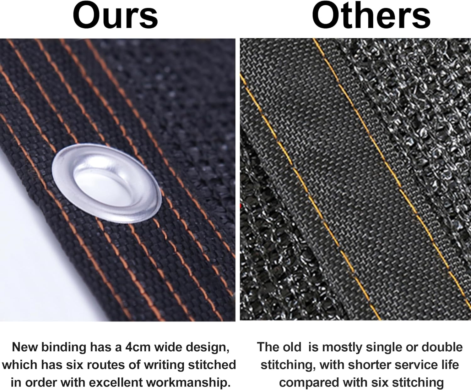 - Easy Set up - There are grommets in each sides every 40 inches. They are located along the entire reinforced edges. You can hang our Sunblock Shade Cloth freely and easily without any worry about tearing up.