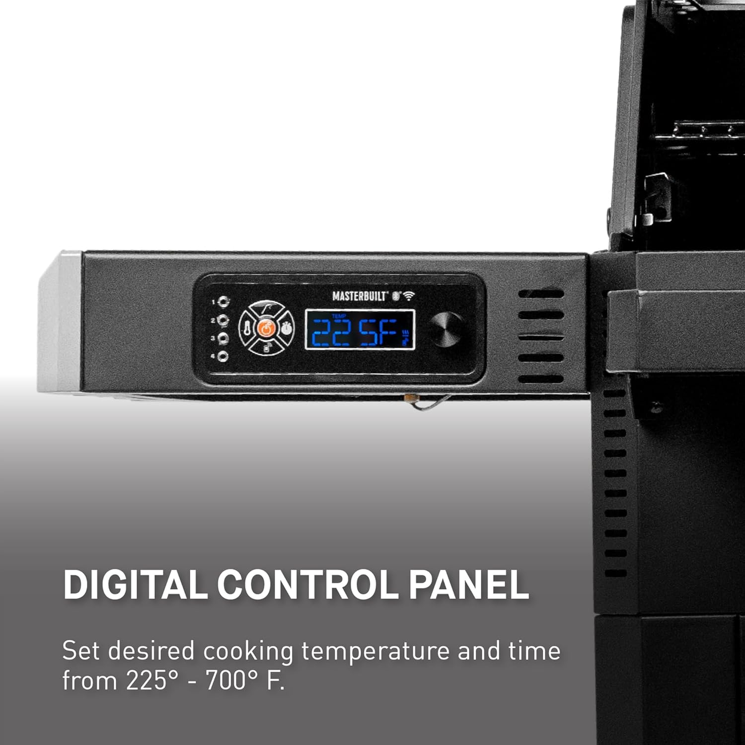 - DIGITAL CONTROLS AND WIFI TECHNOLOGY - Control your barbecue grill and smoker from anywhere with Masterbuilt’s WiFi technology. Set your desired grilling temperature on the digital control panel or by using the Masterbuilt app.