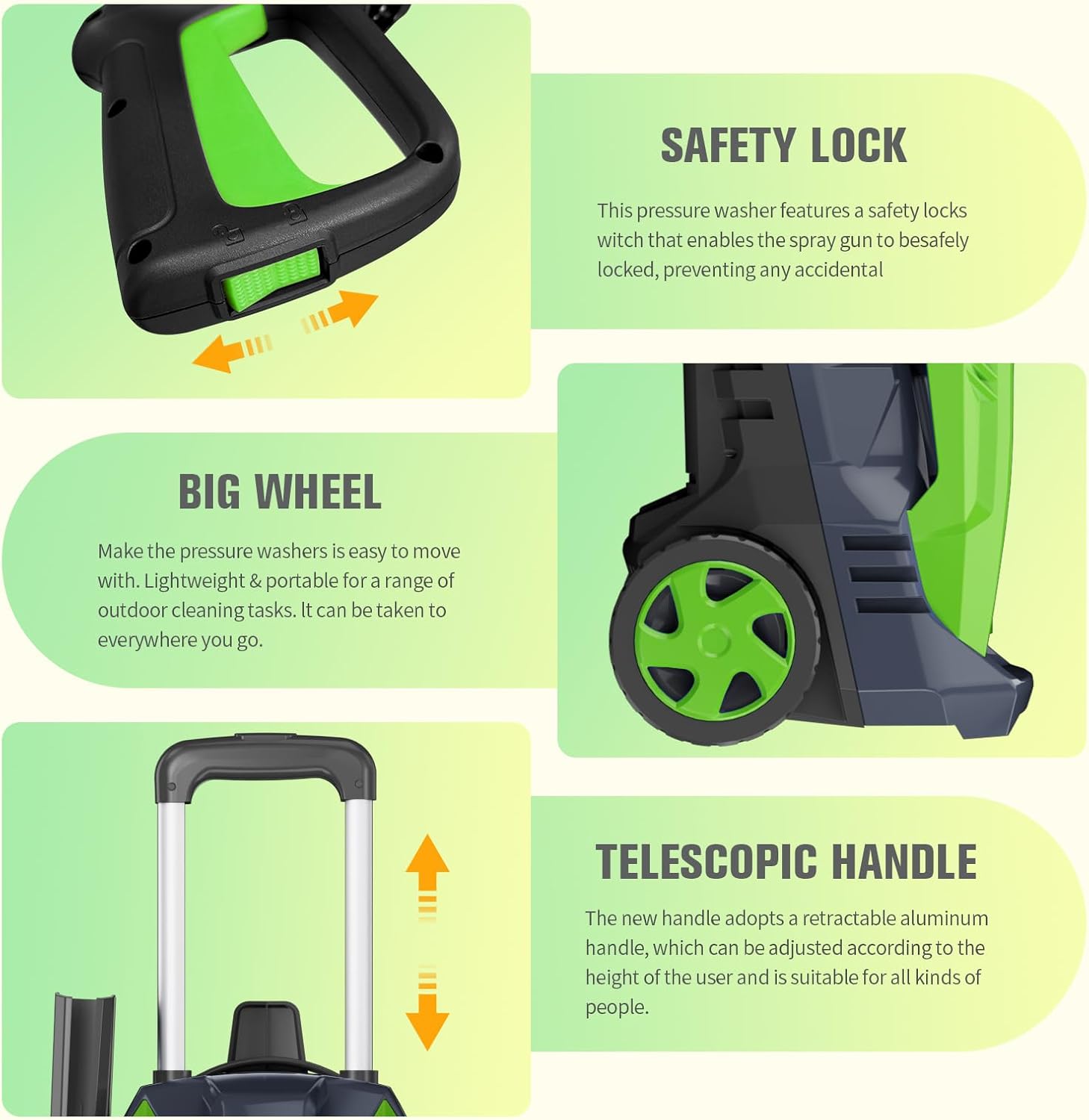 Pressure Washer with 25 FT Hose, 16.4 FT Power Cord, Soap Tank Car Wash Machine Green