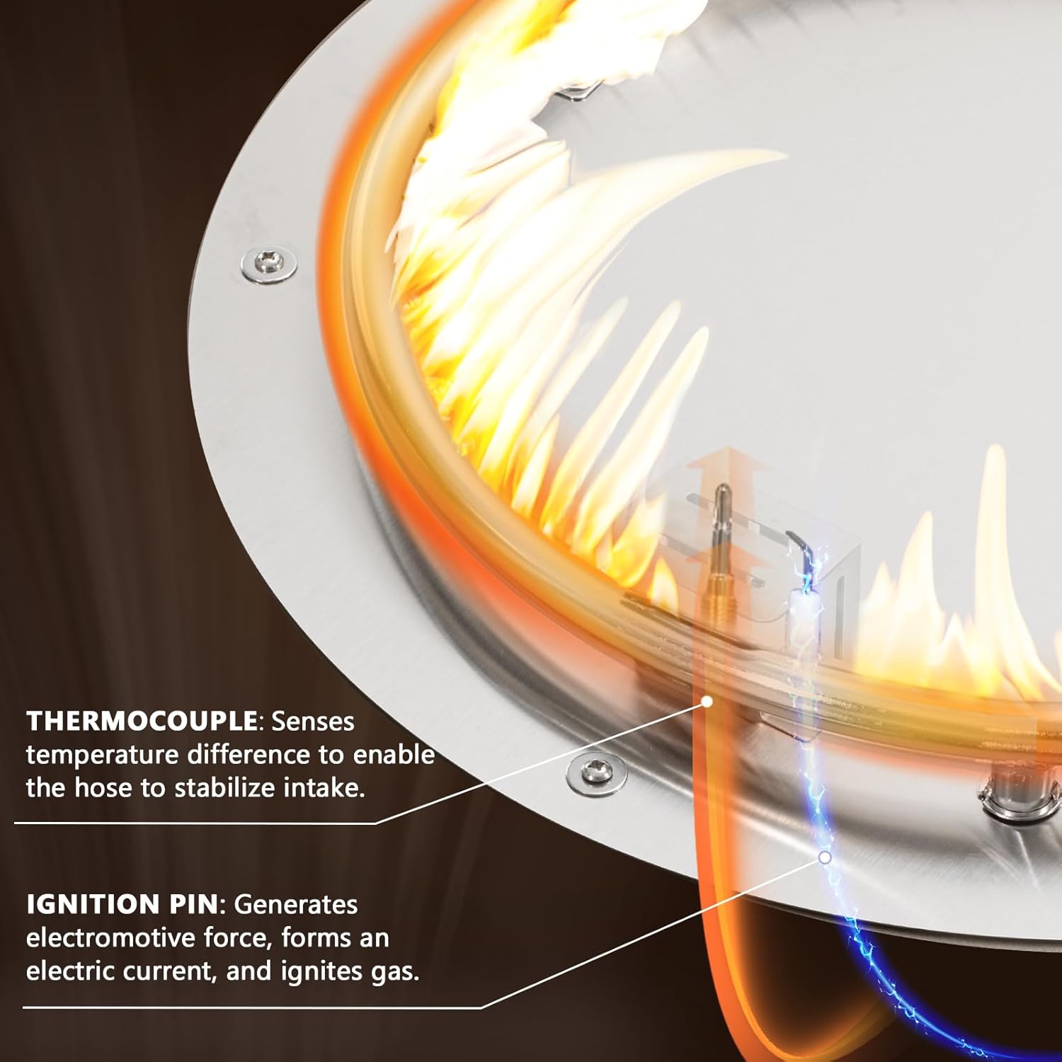 - đ„ăUnique Fireplaceă: It's like having a fireplace wherever you want it! The low profile of this elegant fire table just beckons you to gather round it and tell stories. Clean burning propane flame provides soothing warmth with electronic ignition, safety valve for easy start, gentle lighting and a centerpiece for many outdoor evenings worth remembering.