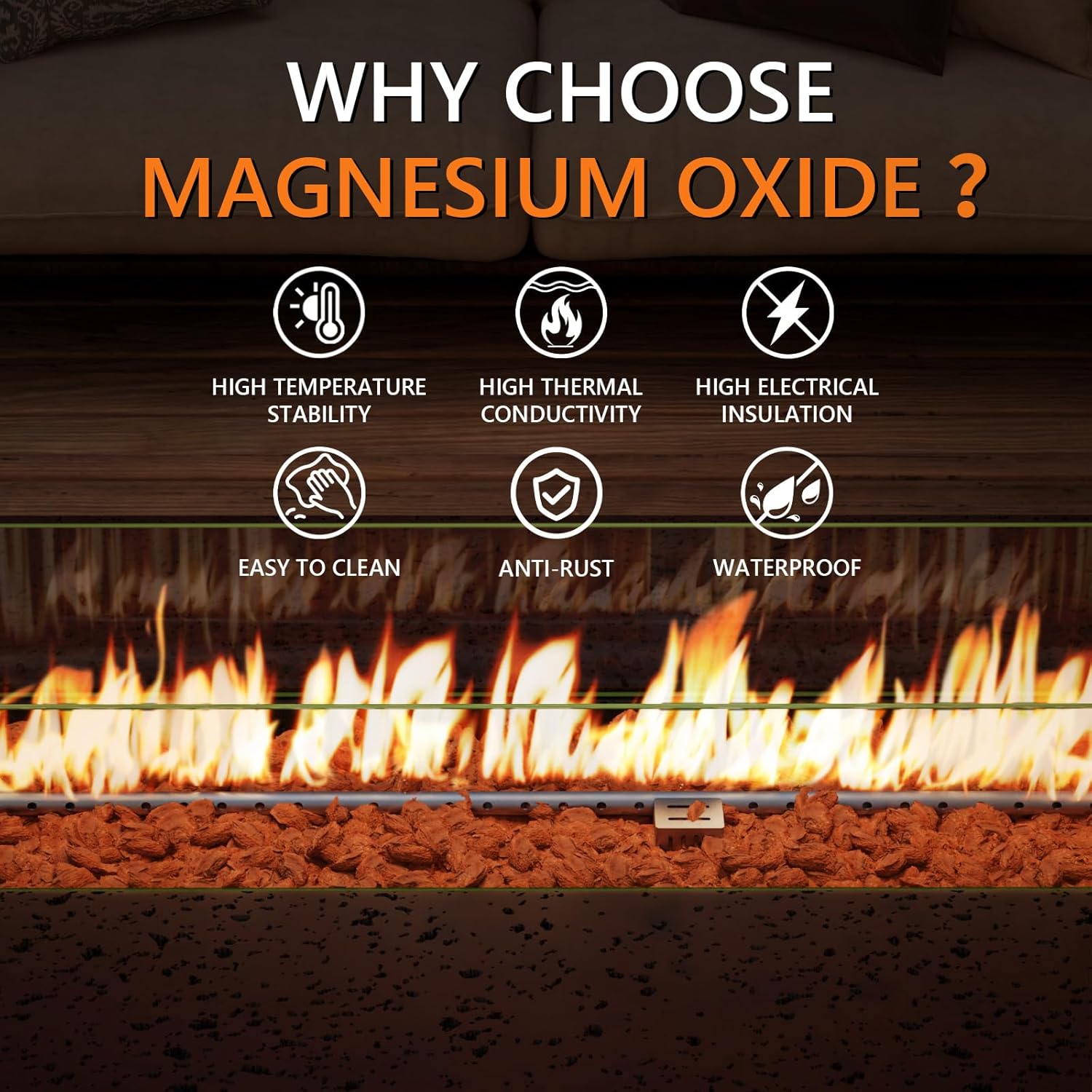 - đ„ăMesmerizing Flamesă: The ultramodern terrazzo white finish is something you'd expect to see in a chic SOHO loft space or art opening with it's simple, unobtrusive style. All built to last from sturdy, fire retardant magnesium oxide with a stainless steel burner bowl, low maintenance and resistant to heat. Lights with the push of a button and flame intensity is controlled by the turn of a knob.