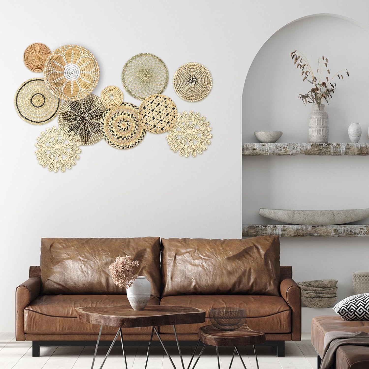 - Wide Range of Applications: boho basket wall decor set as placemats, or as decorative baskets to store toys and accessories, the rustic basket wall art is suitable for many occasions, such as hotels, restaurants, living rooms, bedrooms, schools, stores, offices, dorms, shops, Christmas and more, bringing you an elegant and classic feeling