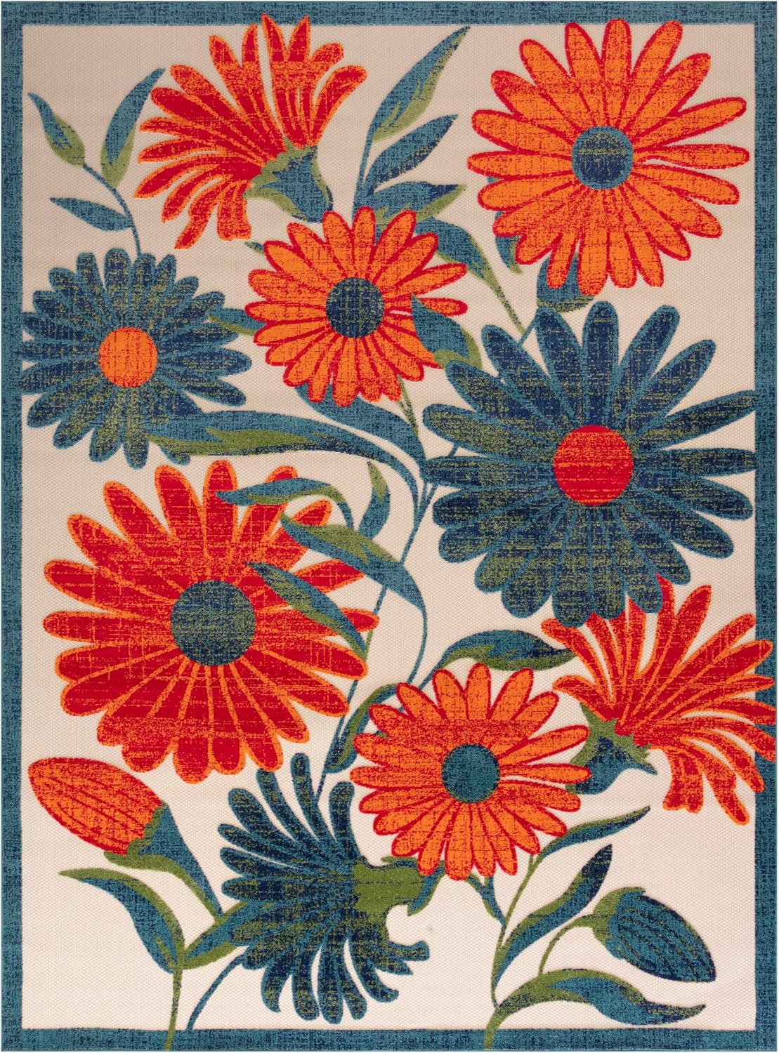 - EYE-CATCHING PATTERN: This floral outdoor rug is flatwoven with a subtly raised cut pile for a distinctive look and soft texture.