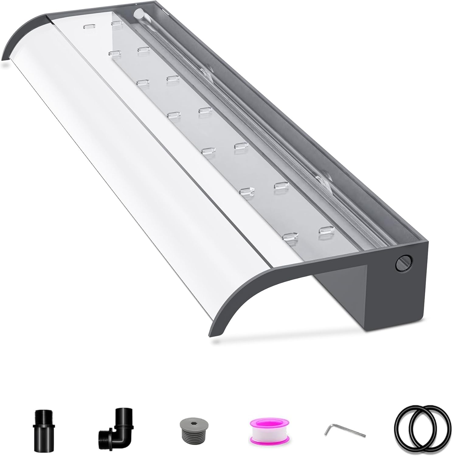 - ăUpgrade High Quality Acrylică - Constructed from durable, leak-proof acrylic that is rust-proof, this waterfall fountain has a sleek, modern design. The high quality material ensures long-lasting beauty and enjoyment, creating an elegant and beautiful fountain effect for your garden, swimming pool, or pond. LED light strips not included, but available separately.