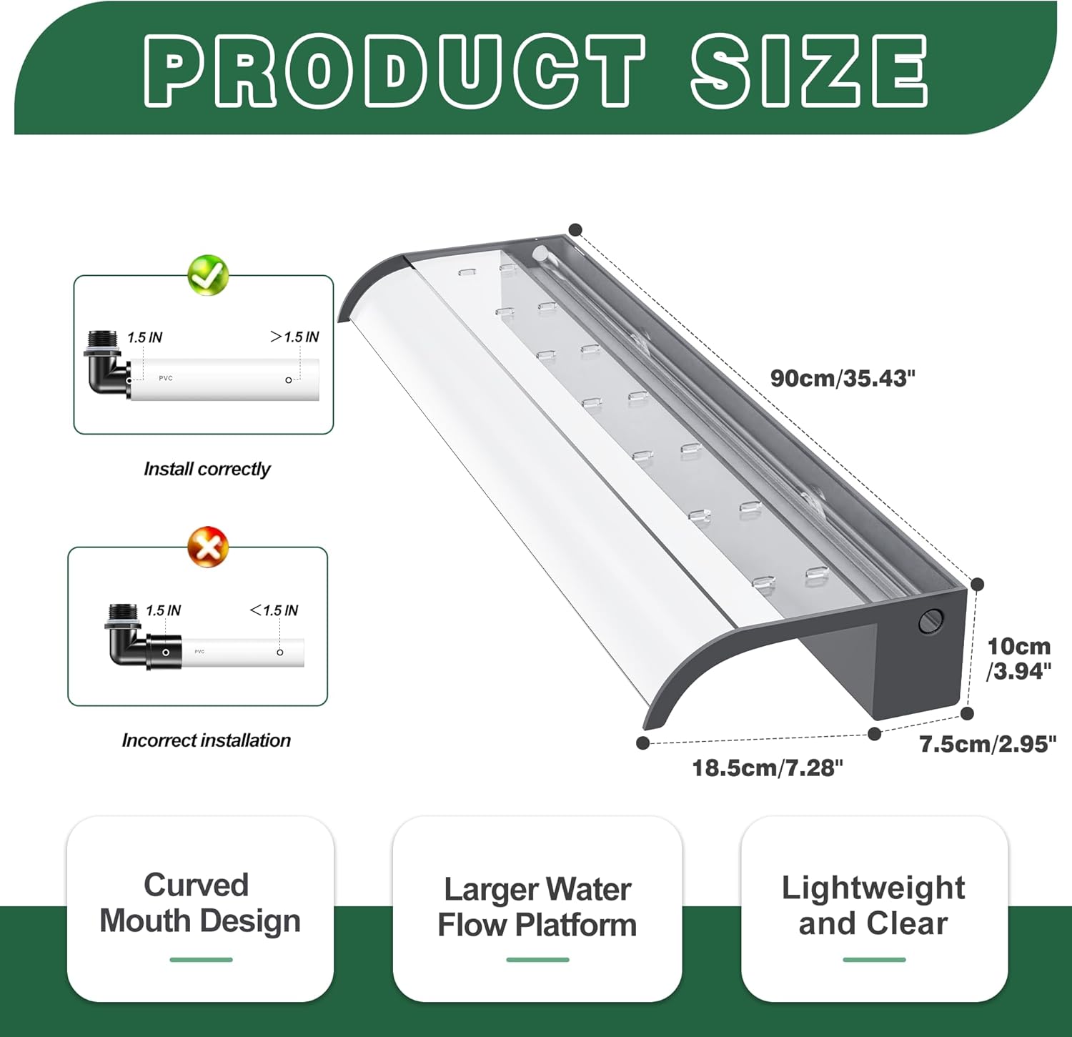 Waterfall Spillway, Clear Acrylic Pool Fountain w/Top Open Lip & Pipe Connector Kits for Outdoor/Indoor Decorative, 35.4'' Pool Water Feature for Garden Patio, Backyard Koi Pond Decor