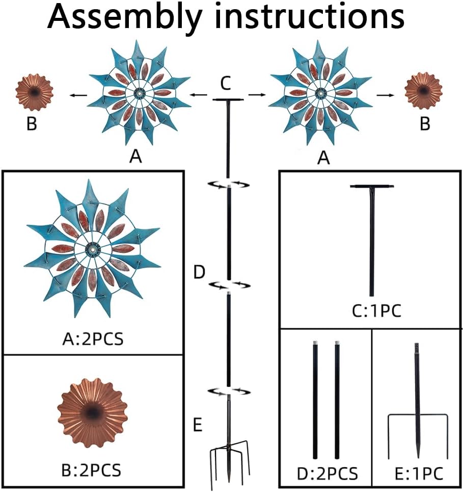 - Easy Installation:The double garden wind spinners are easy to install, no extra tools are needed, just tighten all the parts, the whole process will only take 5 minutes