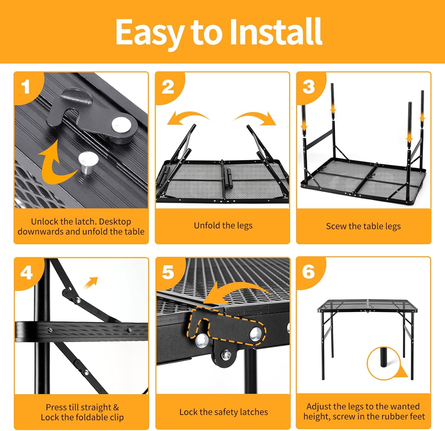 - Multifunctional - Adjustable Rubber Feet at the bottom of the table are designed to keep the table flat. Even on uneven ground can be adjusted to make it smooth, ideal for camping trips, outdoor motorhomes, park picnics, beach camping, barbecue tables, fishing, and indoor
