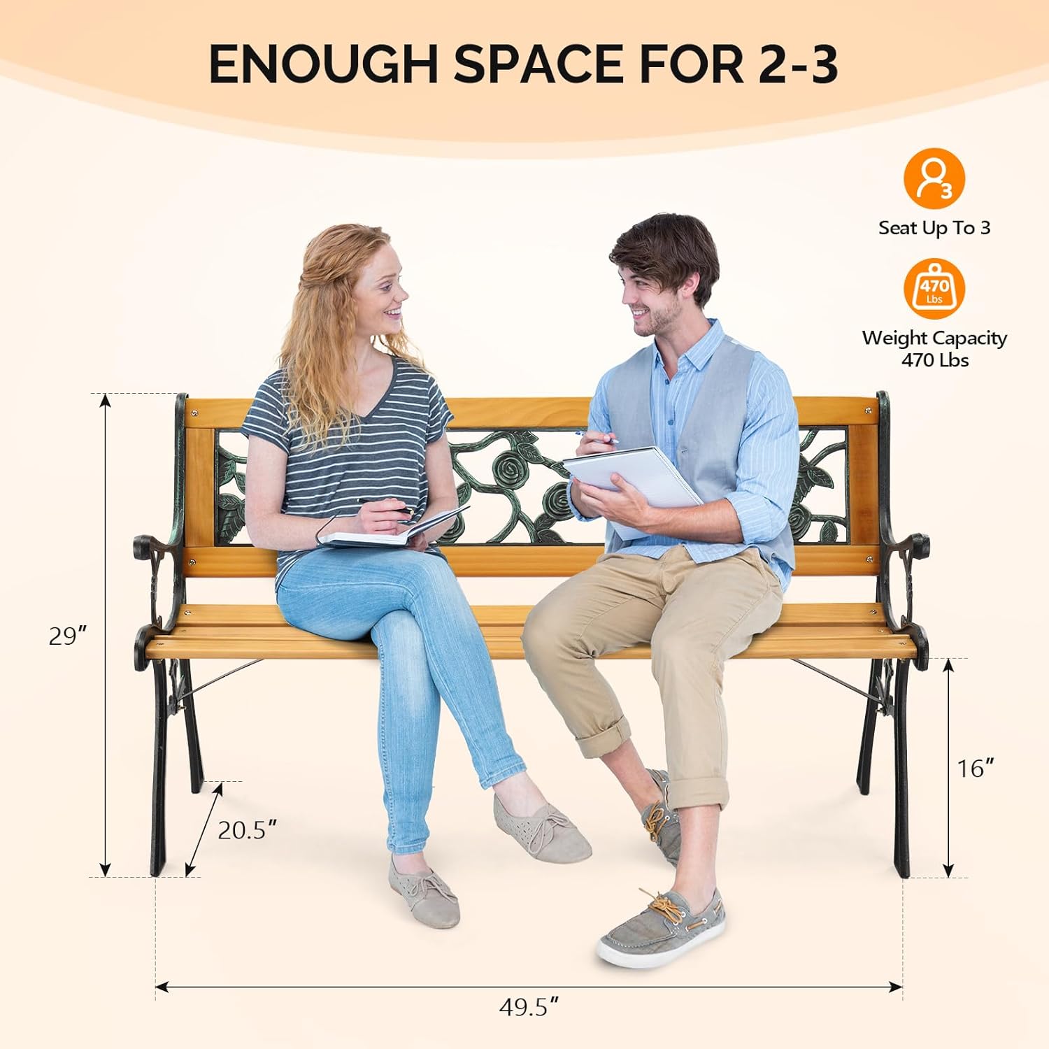 - Large Bearing Capacities: The small front porch bench boasts robust support, accommodating 2-3 people comfortably with a weight capacity of 470 lbs