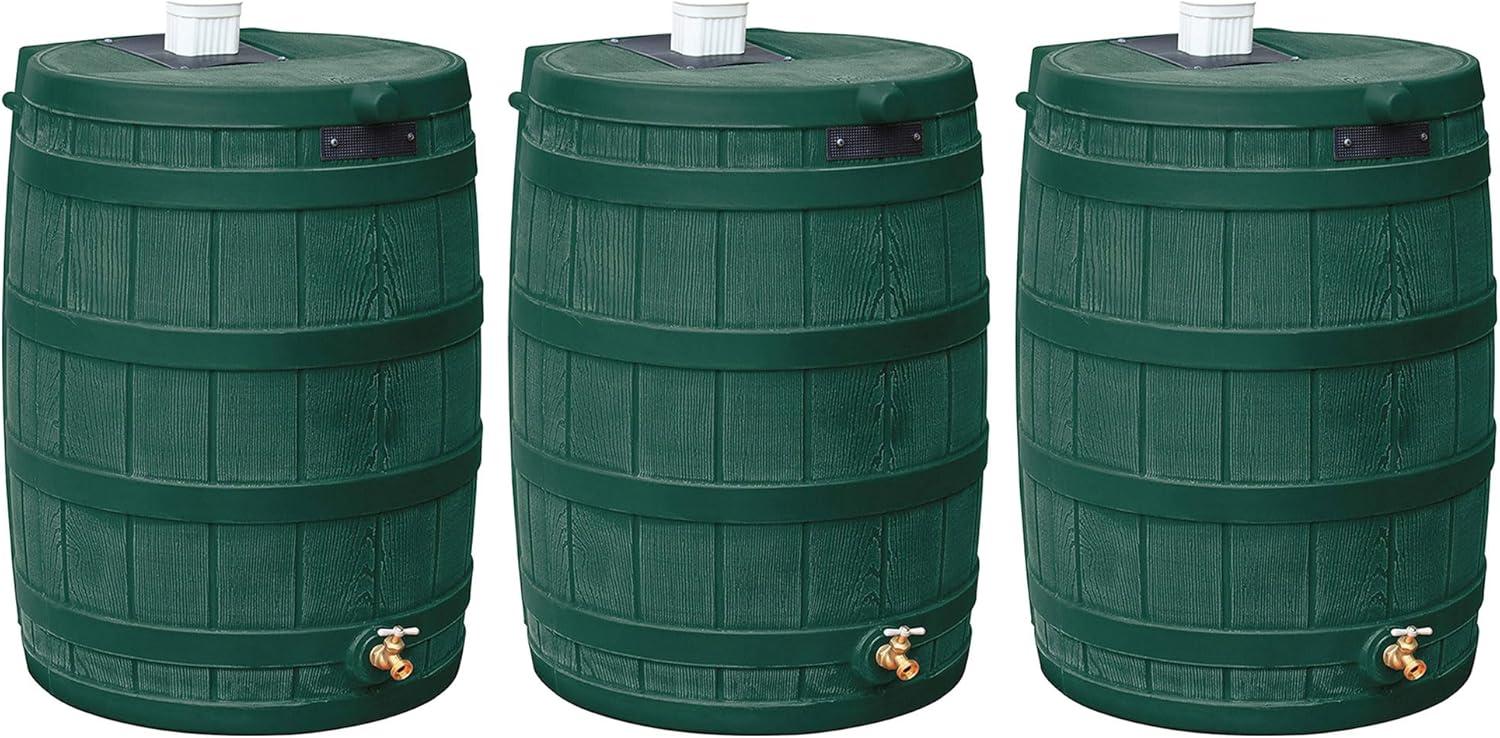 - Rain Barrel: Add style and beauty to your outdoor space while helping the environment by conserving water with this set of 3 50-gallon rain barrel
