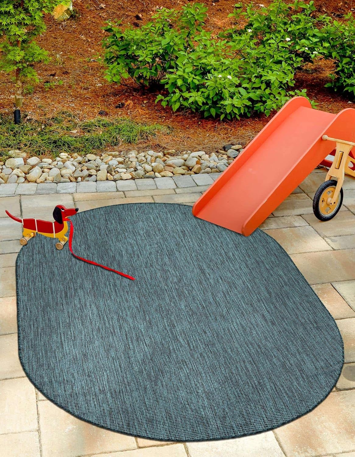 Unique Loom Outdoor Solid Collection Area Rug (6' 1" x 9' Oval Teal/Navy Blue)
