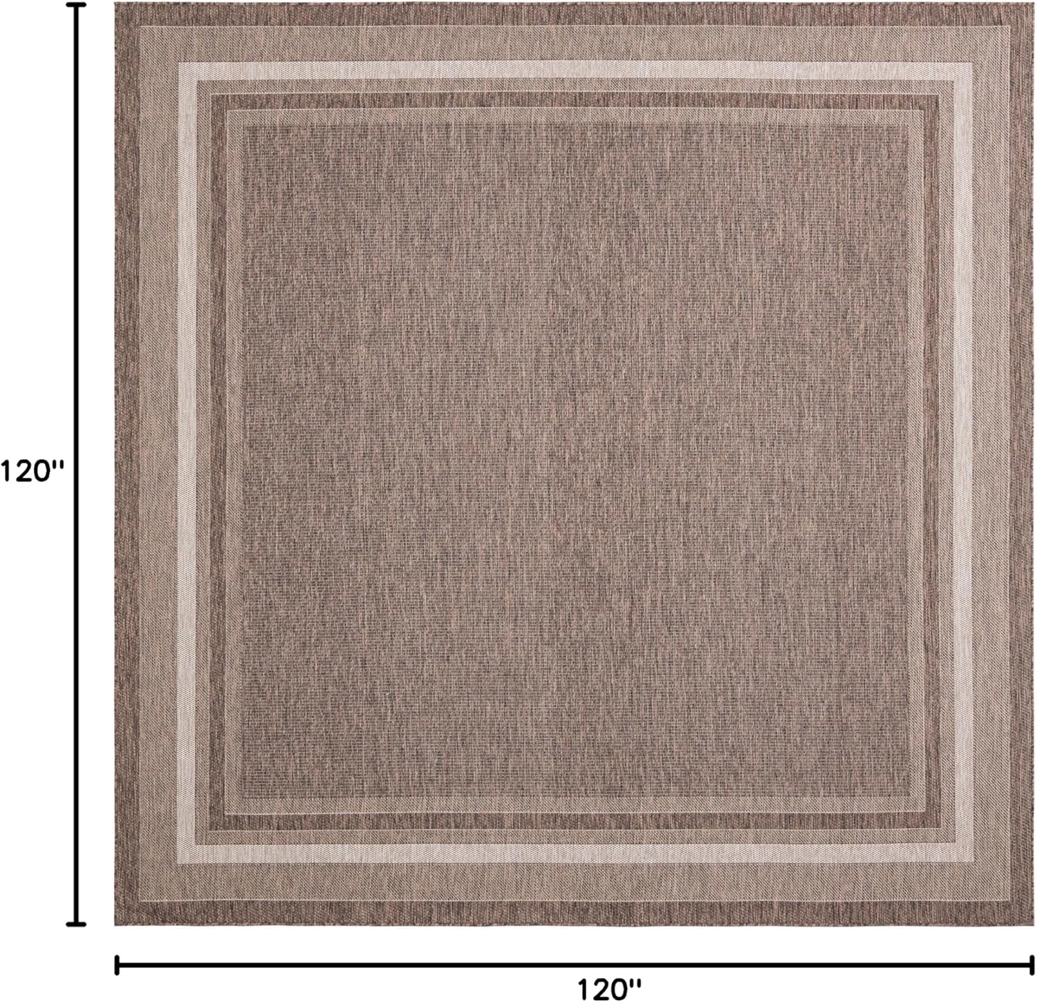 Unique Loom Outdoor Border Collection Area Rug - Soft Border (10' Square Brown/Ivory)