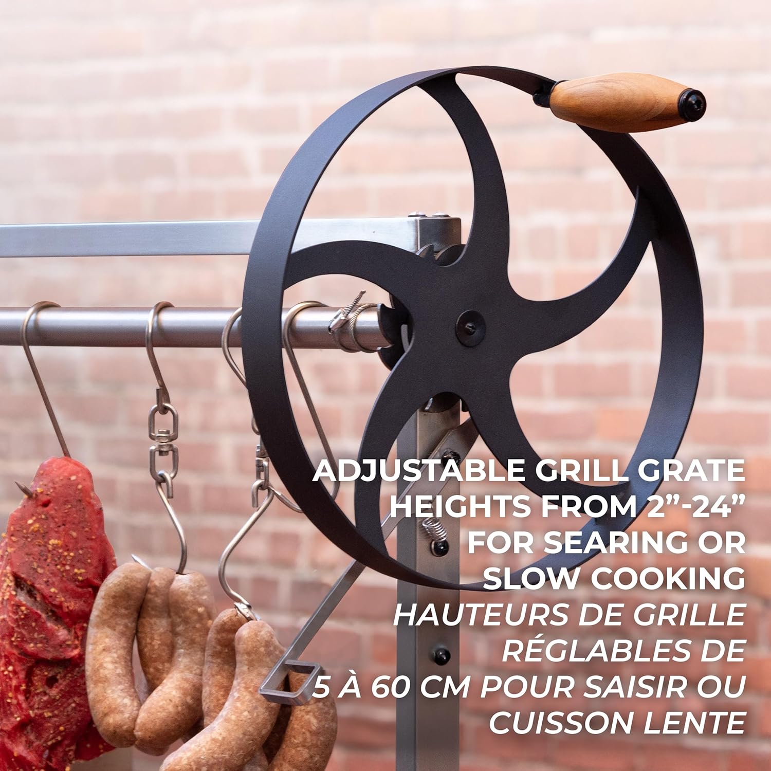 - Versatile S-Hooks: 4 stainless steel hooks for Gaucho-style vertical grilling, perfect for slow cooking and smoking multiple cuts of meat simultaneously