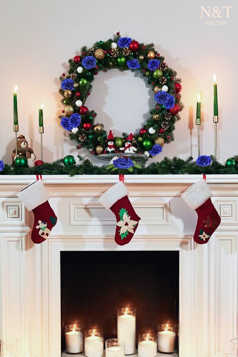 N&T NIETING Artificial Flowers Glowing Navy Blue Flowers Foam 25pcs Glitter Roses Real Looking Fake Roses with Stem for DIY Wedding Bouquets Centerpieces Bridal Shower Party Home Decorations