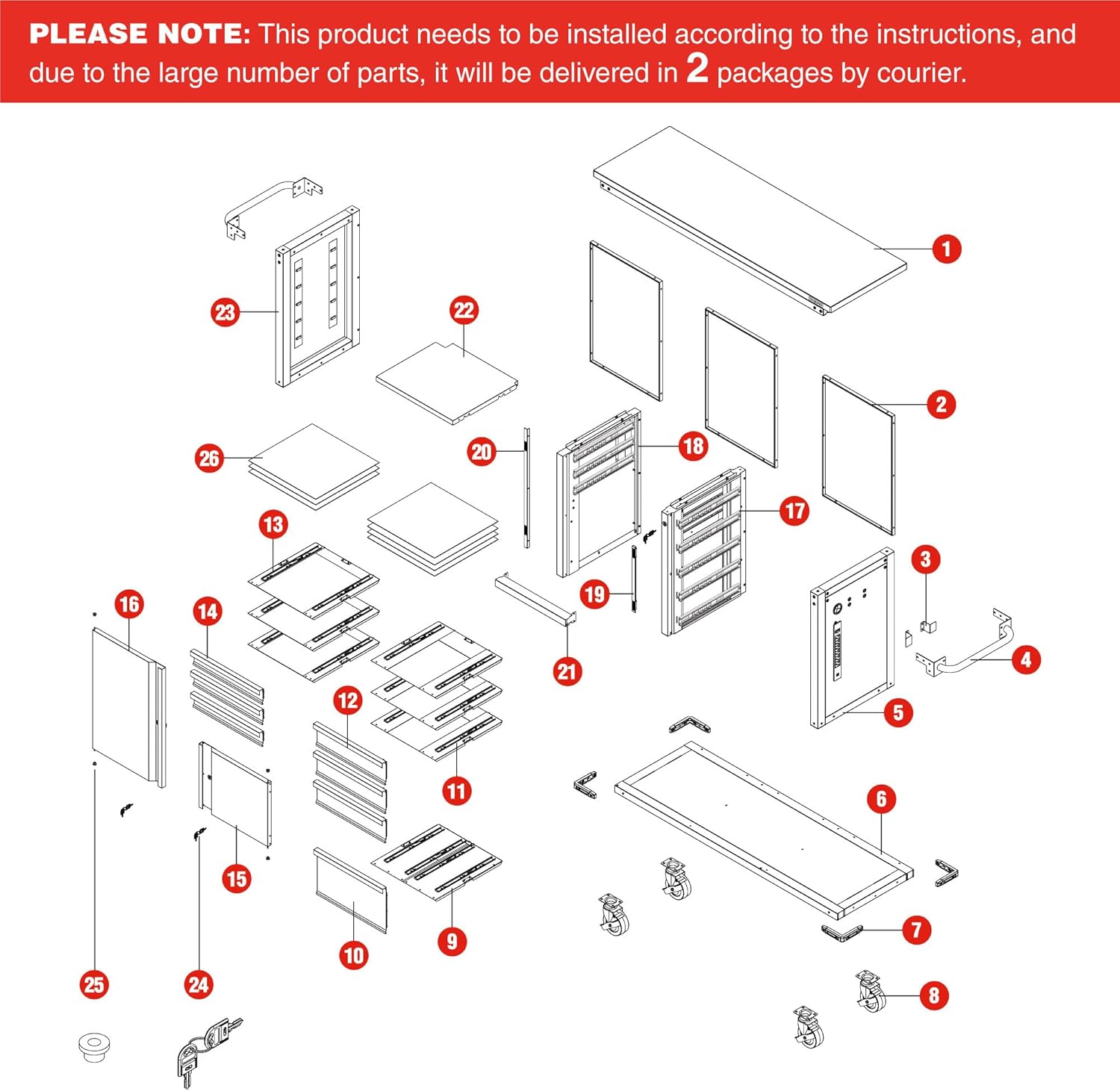 - 7-Drawer & 2-Door: The tool storage cabinet needs to be installed according to the instructions, and due to the large number of parts, it will be delivered in 2 packages by courier. It includes 7 drawers of varying sizes (large, medium, and small) and 2 doors, offering ample storage. Each drawer features smooth ball-bearing slides for silent operation. Inside, cushioned anti-slip liners prevent tools from rubbing and colliding. The left-side door is equipped with adjustable shelves for organizing different tools and equipment to meet various needs.