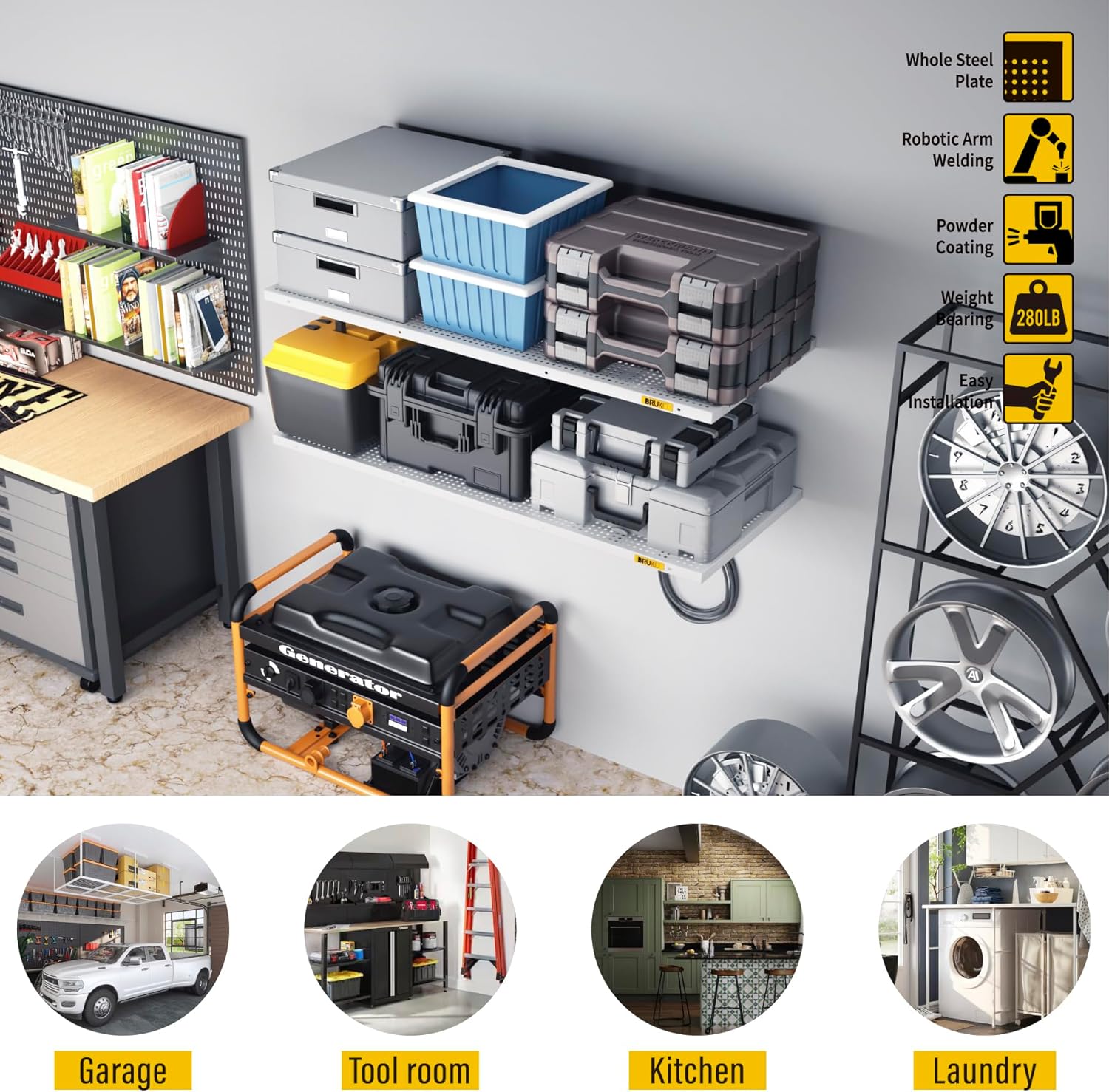 - STABLE AND SAFE: The storage rack is reinforced and safely designed for each connecting pivot point, abandoning the simple and rough wire mesh frame, using the whole piece of perforated steel plate molded in one piece, the whole is solid and beautiful, with a single piece of safe load-bearing capacity up to 280 pounds; allows you to organize and categorize messy and scattered items in an orderly manner, expanding your use of the space and making your garage/storage room more neat and tidy, perfect for walls in garages, storerooms, living rooms, kitchens, and other indoor spaces