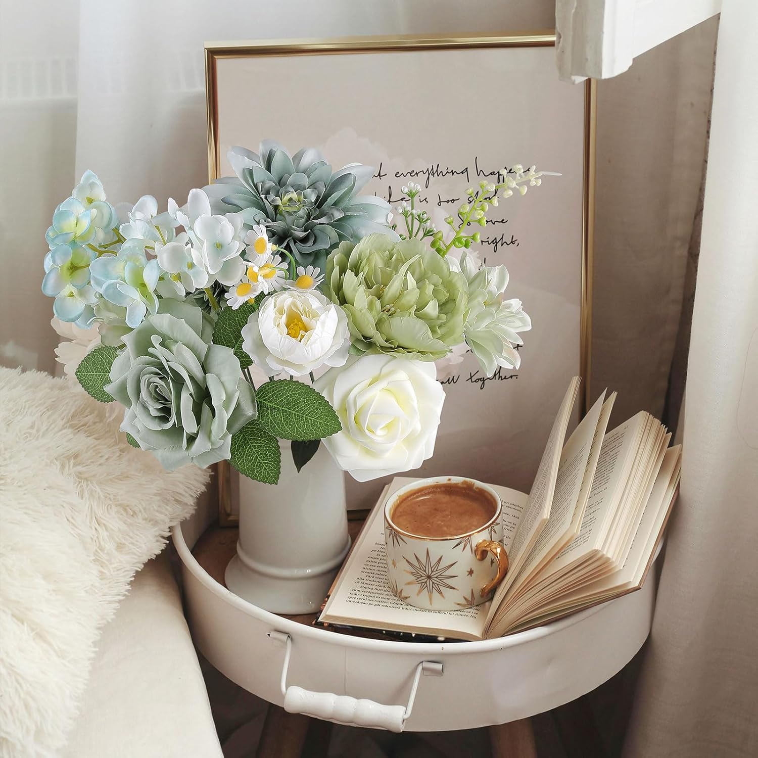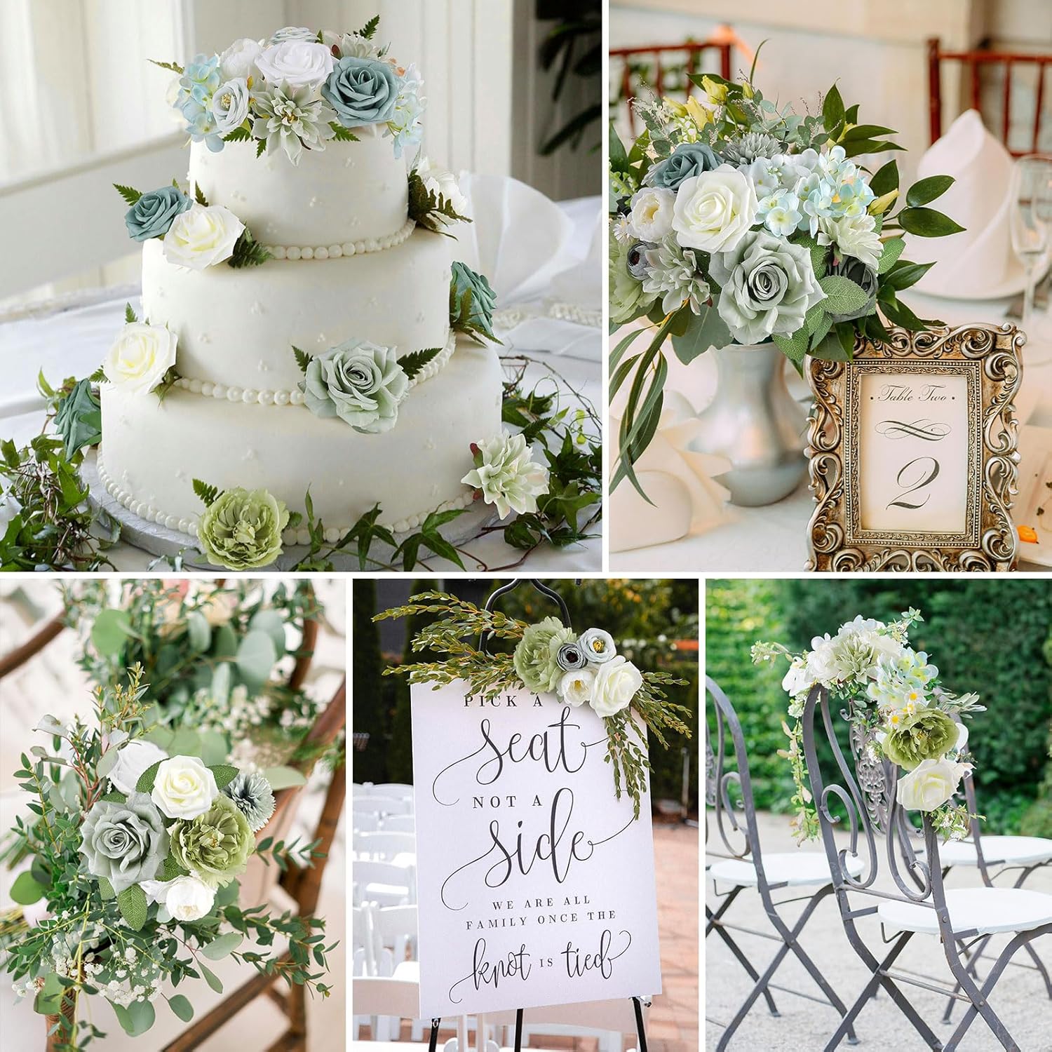AGIRL Artificial Flowers Combo Silk Mix Green Fake Flower with Stems for DIY Wedding Bouquets Centerpieces Arrangements Table Chair Decor Baby Shower Home Decor (Sage Green)