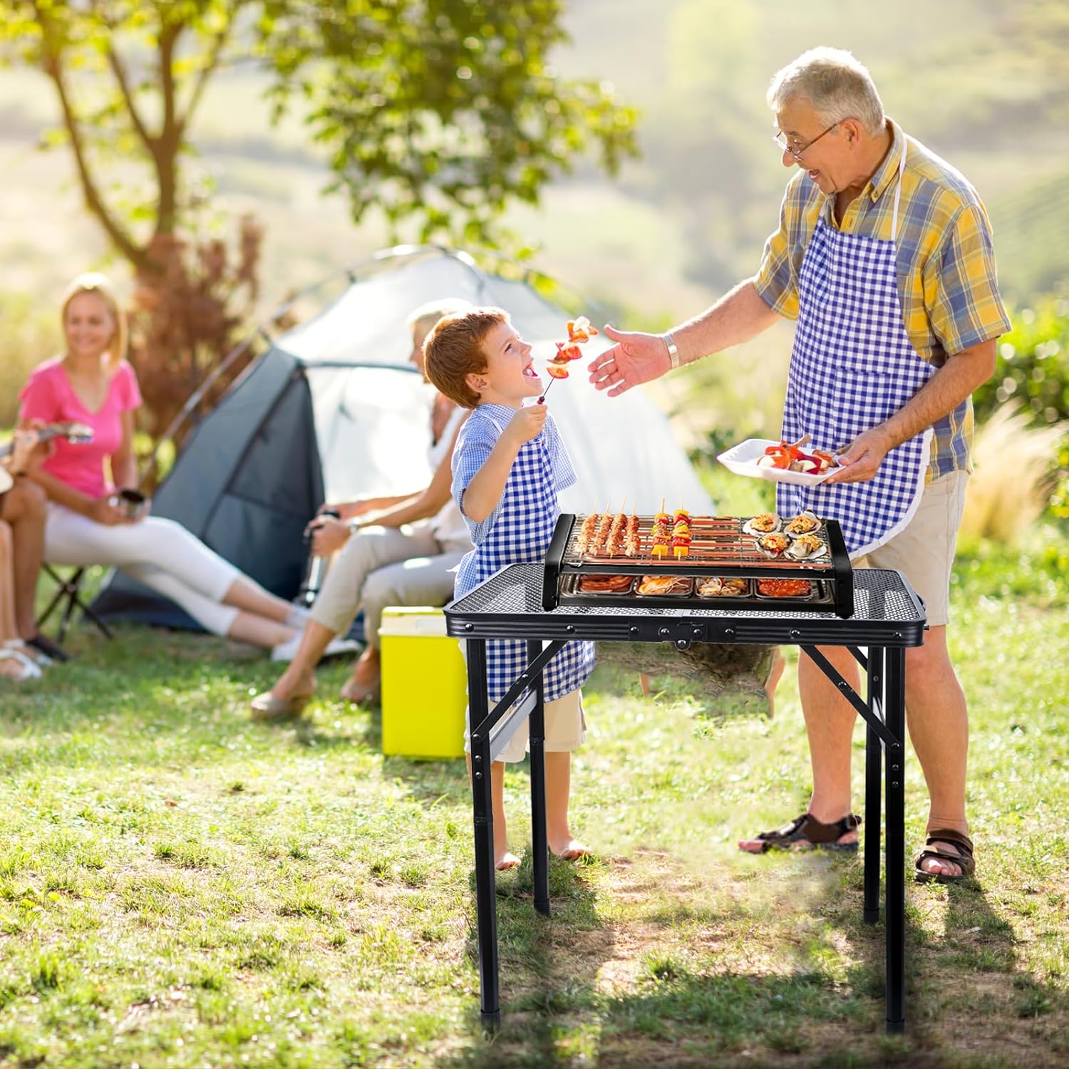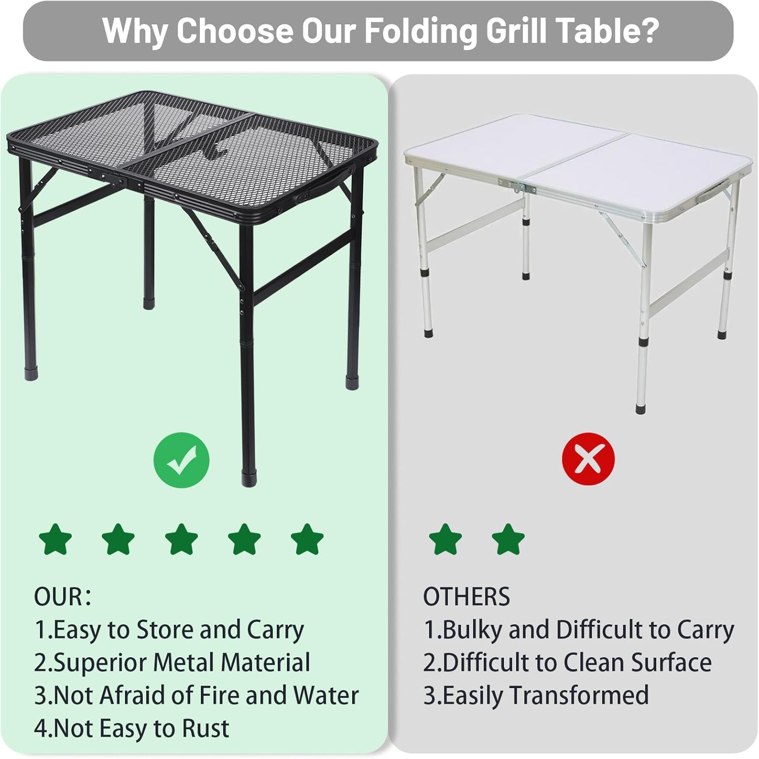 - 【Widely Used】This outdoor folding grill table is perfect for most everyday occasions and for use in outdoor activities. It can be used as an outdoor picnic table, BBQ, small patio table for adults, metal camping table for the beach, fishing
