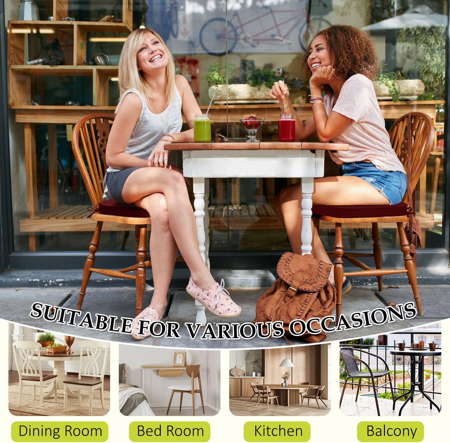 Chair Cushions for Dining Chairs, Indoor Chair Cushions with Ties,Waterproof Chair Pads Set of 6, Burgundy, 17x16x2.5 Inch