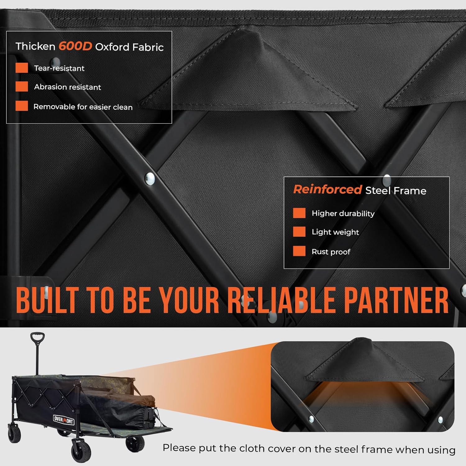 - 【High-Quality Material】This utility collapsible wagon is crafted with 600D thickened Oxford cloth, ensuring both waterproof and tear-resistant properties. Its excellent wear resistance extends the service life, while the removable and washable bag adds convenience, eliminating worries about dirt.