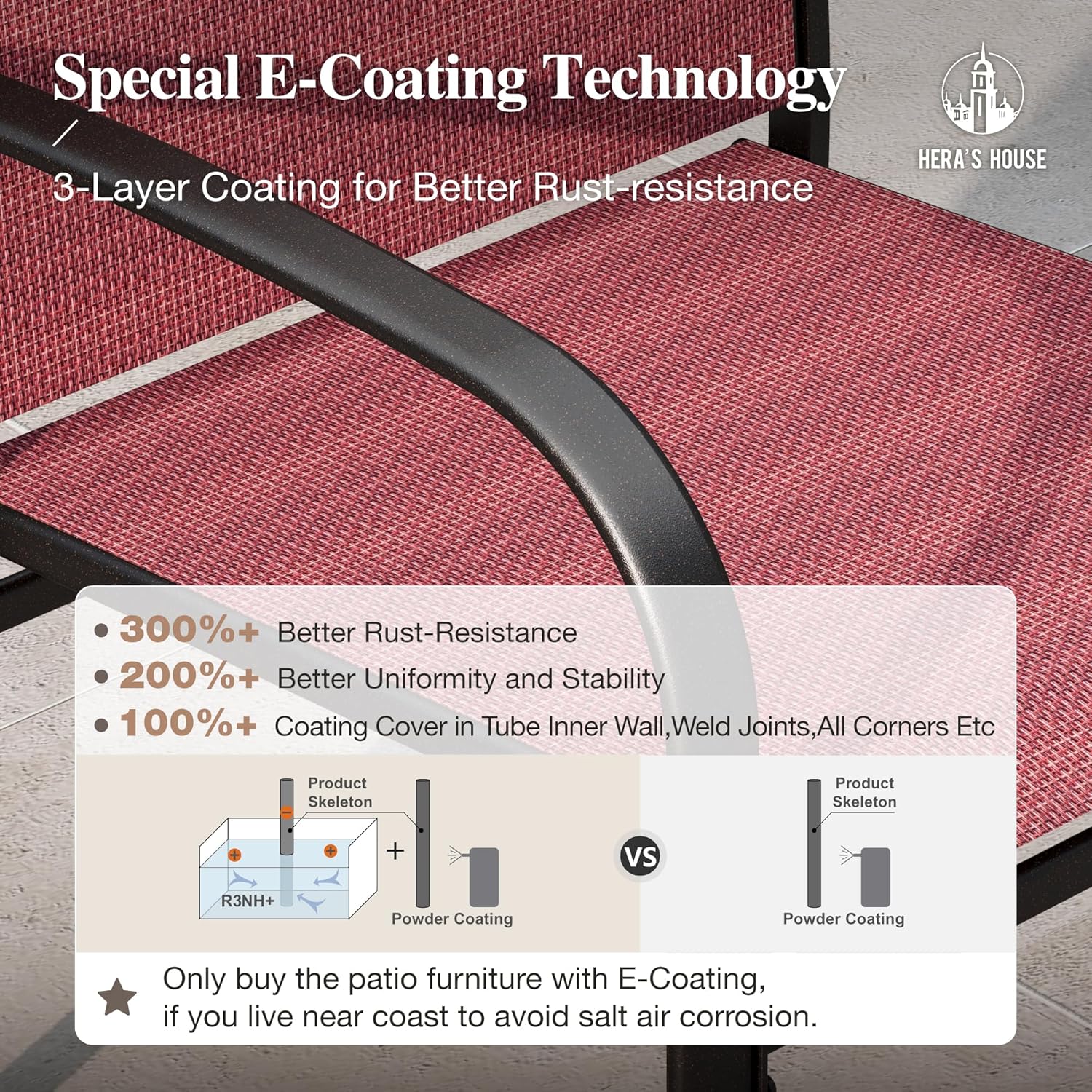 - 【TEXTILENE FABRICS FOR ALL WEATHER】100% 550GSM quality thicken textilene fabrics,durable, waterproof, breathable and all weather resistant; easy to clean and care, UV resistant and no fading for long lasting.