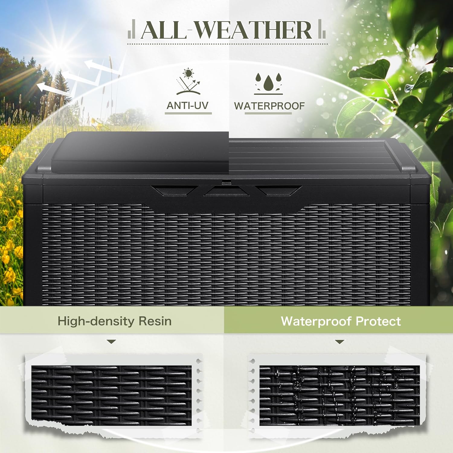 - LARGE STORAGE SPACE: The 100 gallon storage space allows you to store more items with it. Whether it's garden tools or fabrics like clothes and pillows, it can meet your storage needs and keep your space organized.