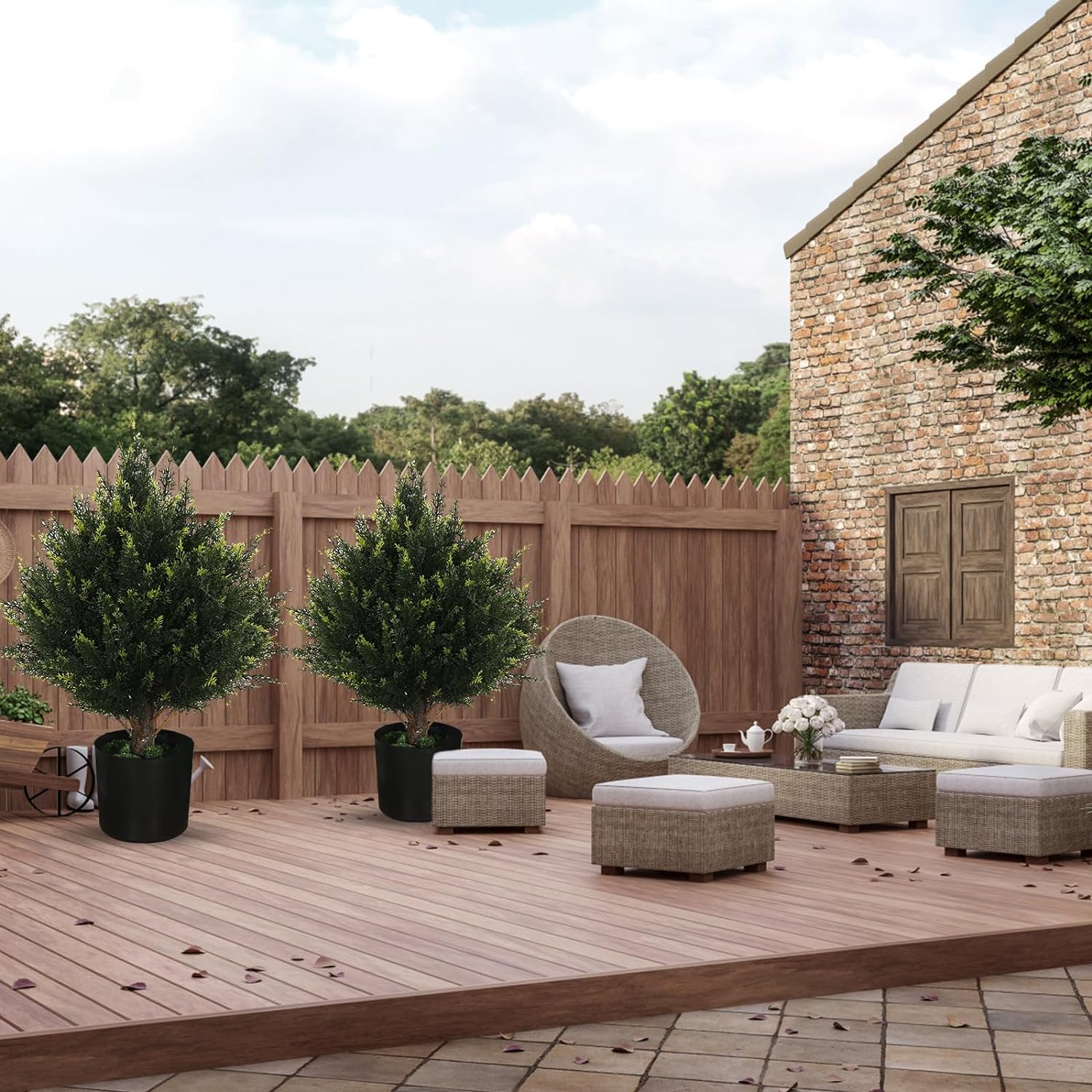- Satisfaction guarantee:The artificial cedar has warranty of 30 days refund. If you do not like it, you can return the product without worry. Since the cedars are made by hand, the same shape of all cedars can not be ensured, but each cedar is beautiful without exception. nearly natural artificial cedar artificial potted plants outdoor If you are not satisfied, please contact our customer service
