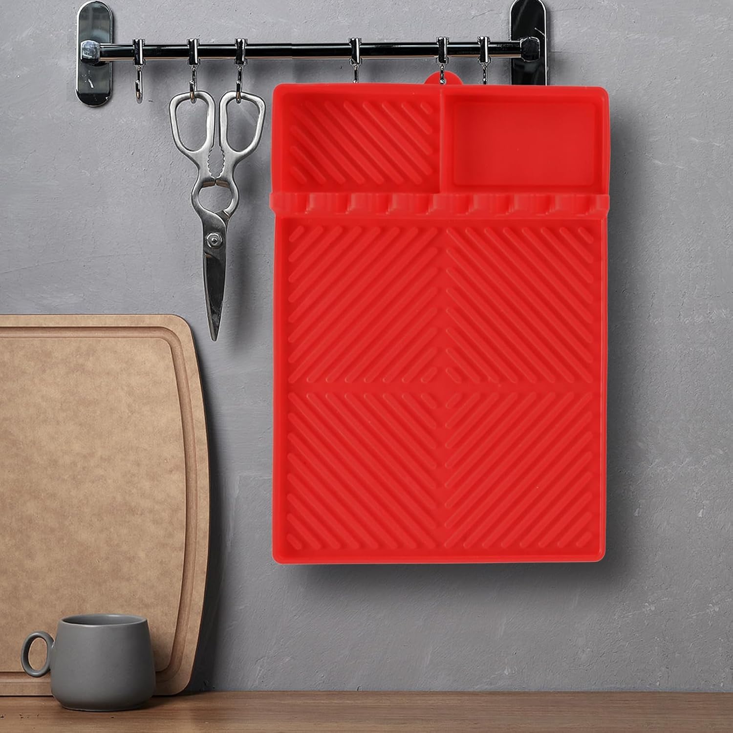 - 【Practical and Efficient】- This silicone protection mat is a powerhouse of efficiency. With its ample size (16x11.5"), it accommodates various utensils seamlessly. Its thoughtful design prevents deformation, simplifying storage and ensuring a clutter-free kitchen.