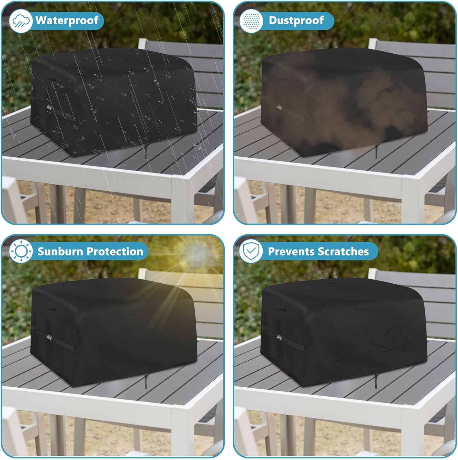 - EASY TO USE: The bbq cover has convenient portable handles with snaps on the left and right sides, which make the bbq cover for outside opens up and easily closes to protect your pizza oven. Our pizza oven cover is also easy to clean, just rinse it with water or a damp cloth and dry it in the sun.