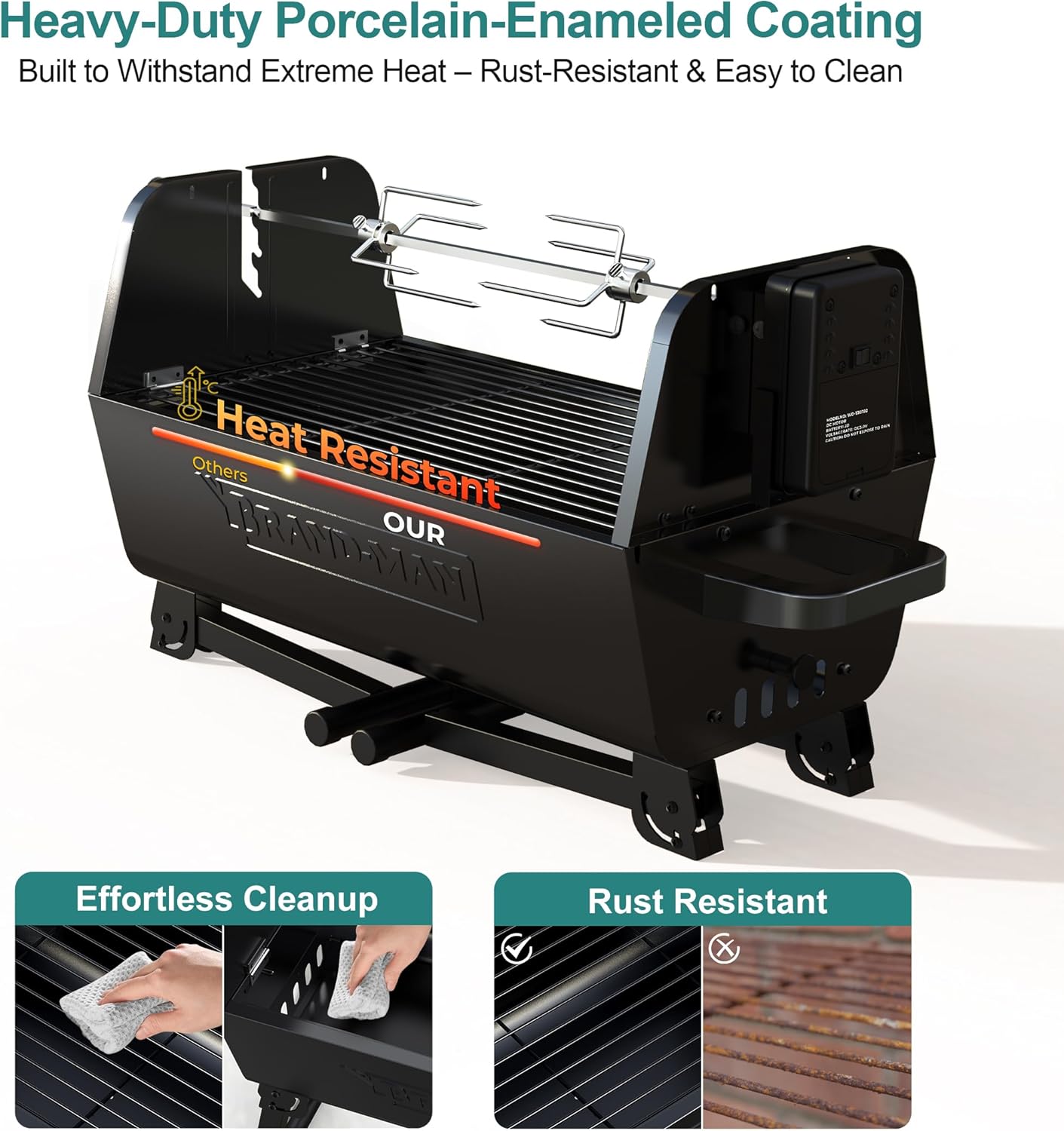 - 【Tool-Free Assembly & Hassle-Free Cleaning】Quick snap-together setup with clear instructions. Removable porcelain-enameled grates and drip tray make post-cook cleanup fast and simple