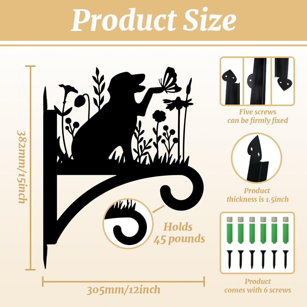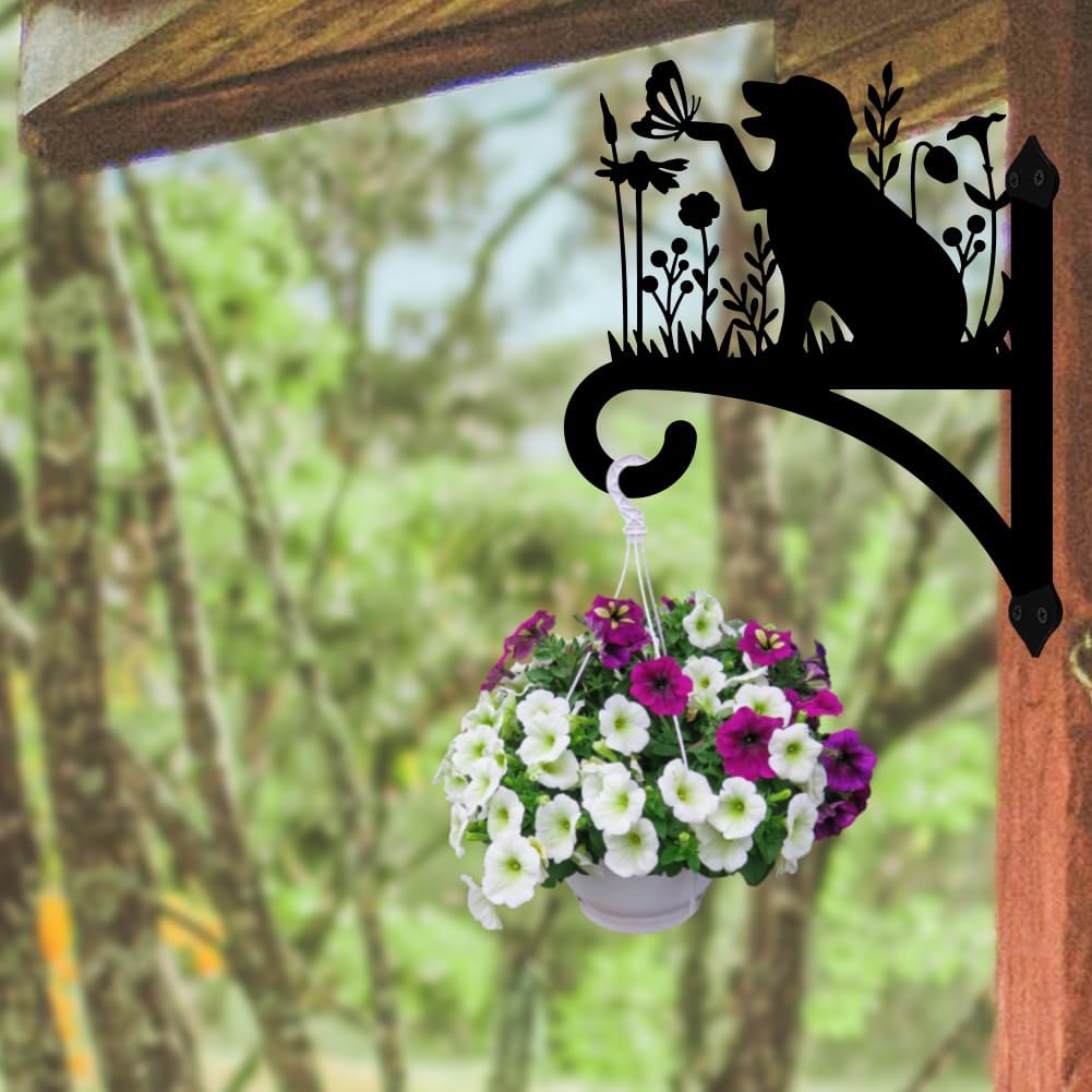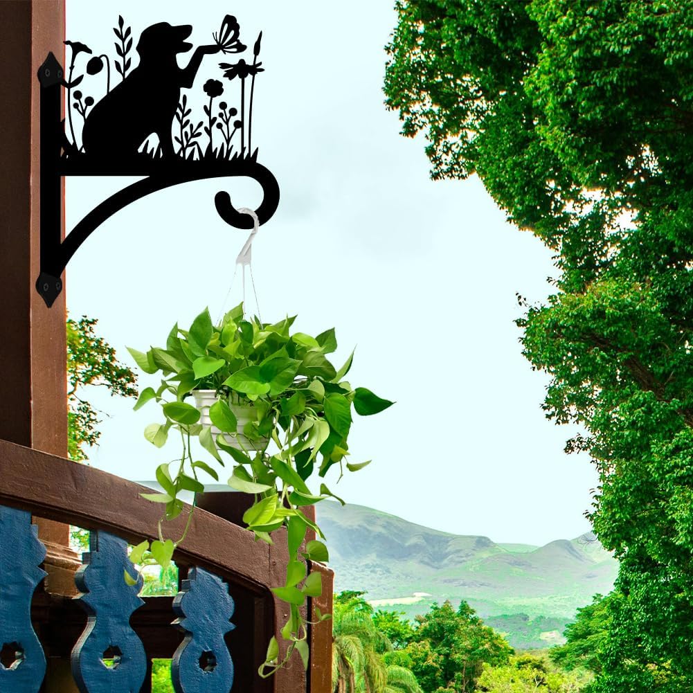 Peacoblue Iron Plant Hangers Holder for Outdoor Indoor Hanging Plants Fern Pots, Lantern, Bird Feeder, Wind Chimes, 12βx14β Dog Weather Resistant Metal Wall Brackets Hooks for Porch, Garden, Home(Dog)