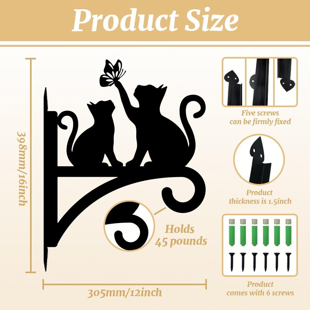 Peacoblue Iron Plant Hangers Hooks for Outdoor Indoor Hanging Plants Fern Pots, Lantern, Bird Feeder, Wind Chimes, 12βx14β Cat Weather Resistant Metal Wall Brackets Holder for Porch, Garden, Home(Cat)