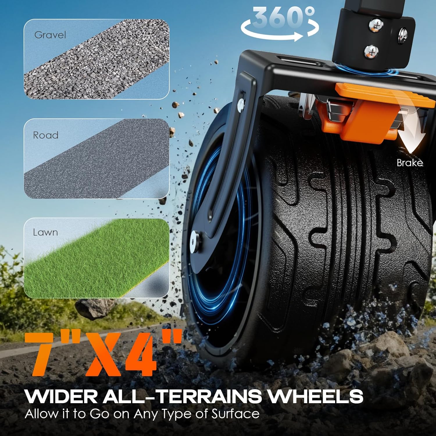 - LOCKING BRAKE DESIGN : The front wheels are equipped with brakes, which locks both the wheels and direction simultaneously effectively to stop and prevent the wagon from moving. Navatiee collapsible wagon features four 7"x4" PVC all-terrain wheels built to handle hard sand, grass, and all kinds of complex ground. It features strong abrasion resistance, silent shock absorbance, wear proof, no drag marks and enhances the impact resistance of the wheels.