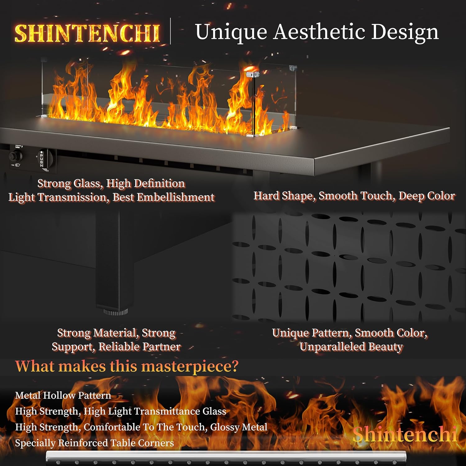 Shintenchi 43 Inch Fire Pit Table, 50,000 BTU Outdoor Propane Fire Table, Outdoor Steel Propane Fire Pit with Lid and Lava Rock for Garden, Yard, Camping, Pool Use, Black