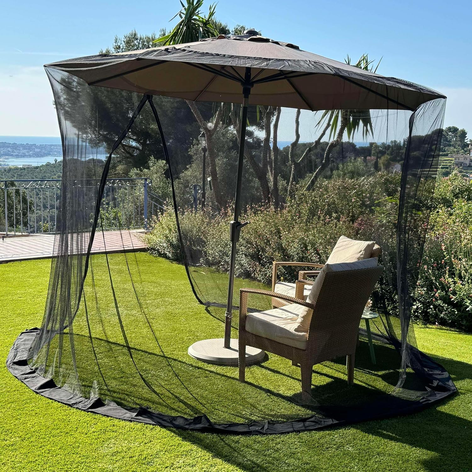 - EASY SETUP & ENTRANCE! The patio umbrella mosquito net is easy to set up with its convenient drawstring top that fits snugly around your umbrella. It also features a user-friendly double zipper entrance, allowing effortless access while keeping insects out. Enjoy a bug-free outdoor space!