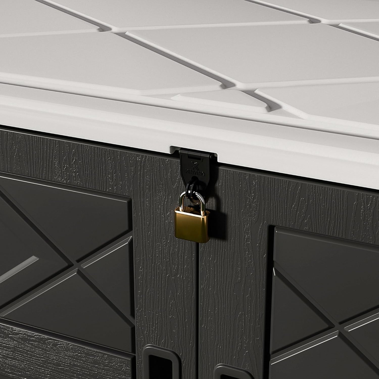 HOMSPARK Storage Shed Weather Resistance, Multi-Purpose Outdoor Storage Cabinet for Backyards and Patios, Horizontal Storage Shed for Lawnmower, Patio Accessories (Black & White, X Large - 48 cu.ft)