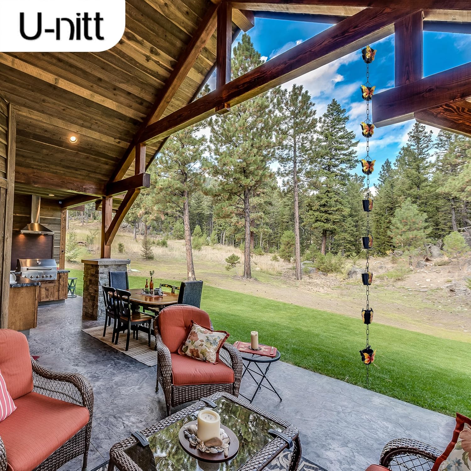 - SUPERIOR CRAFTSMANSHIP - is evident in every detail of this expertly designed U-nitt rain chain. Meticulously crafted from premium, heavy-duty materials, it offers both durability and elegance. Each link or cup is precision-shaped to ensure smooth water flow, effectively guiding rainwater from your gutter in a graceful cascade. Rust-resistant and built to last, this rain chain blends functionality with artistry, adding a refined touch to your homeβs exterior while enhancing rainwater management.