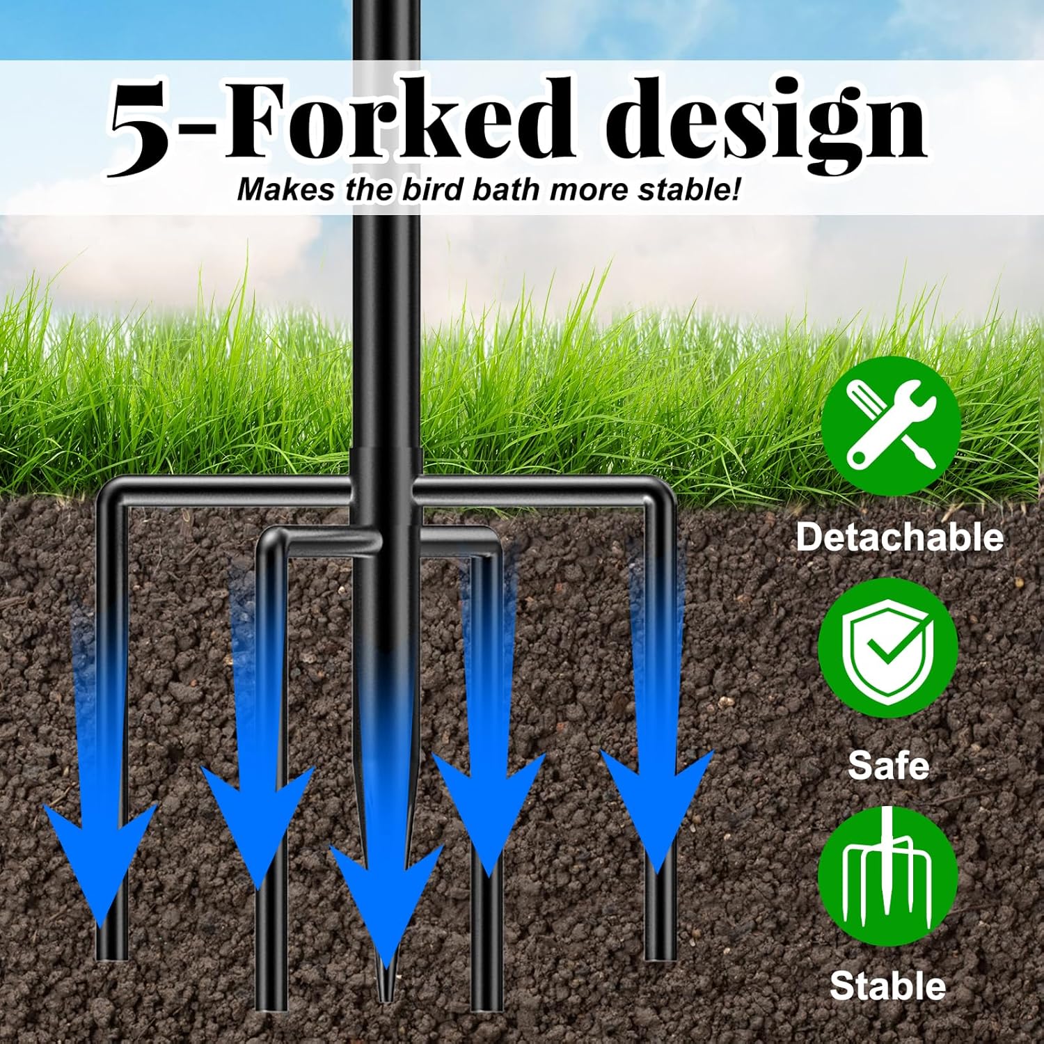 - Sturdy and Durable:The metal bird feeder made of 5-prong base allows the birdbath to be firmly fixed in the soil of your yard, you don't have to worry about the birdbath tipping over in bad weather. Made of excellent material, it is hard to bend, not easily rusted