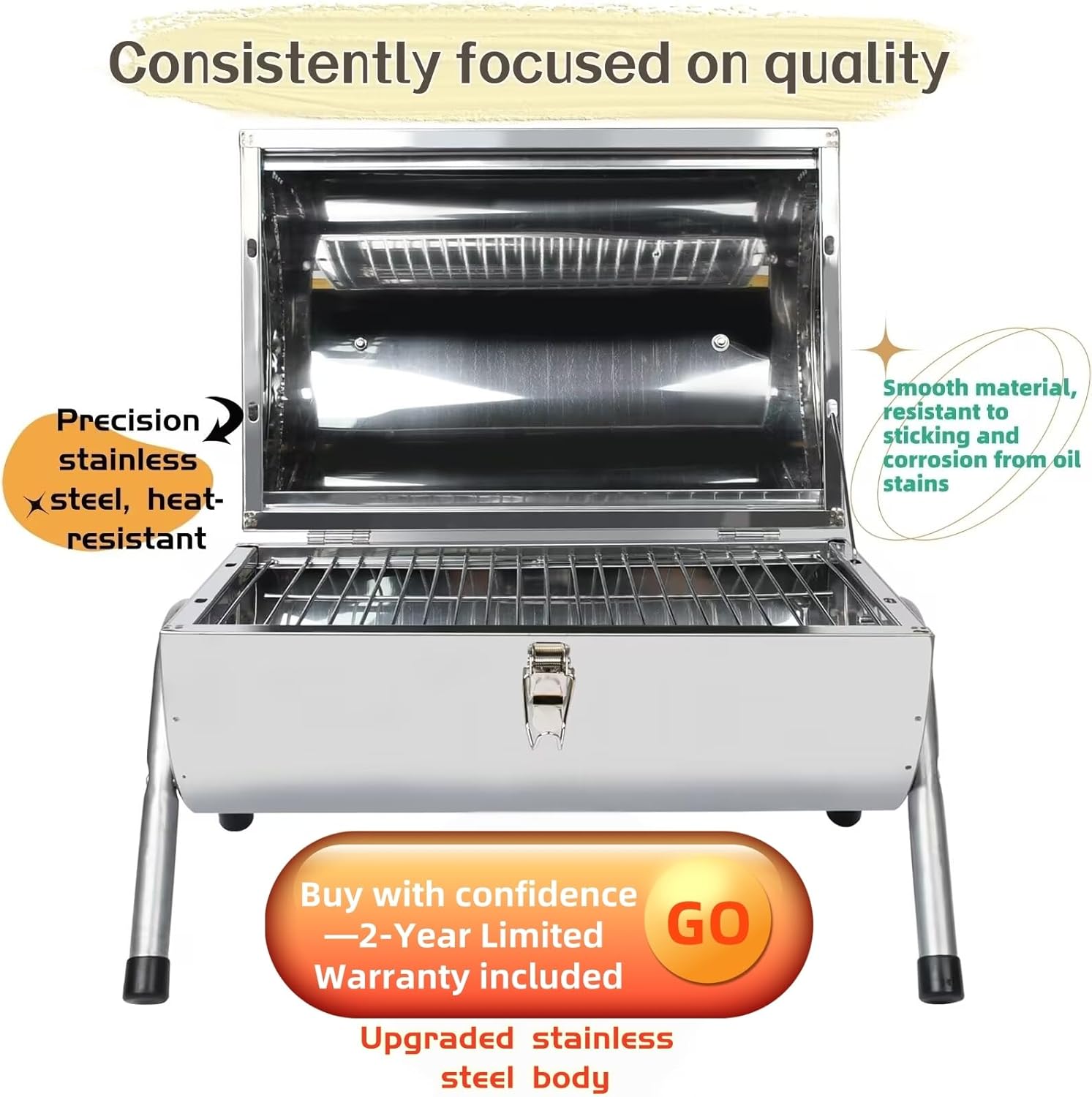 - Special Feature : No chemical coatings or paint — for even safer cooking; portable, easy to install (watch the video guide); dual-sided grilling area —Please note:410 stainless steel is magnetic. This is normal and not a defect. Known for its high hardness and outdoor durability No chemical coatings or paint — for even safer cooking; portable, easy to install (watch the video guide); dual-sided grilling area —Please note:410 stainless steel is magnetic. This is normal and n… See more