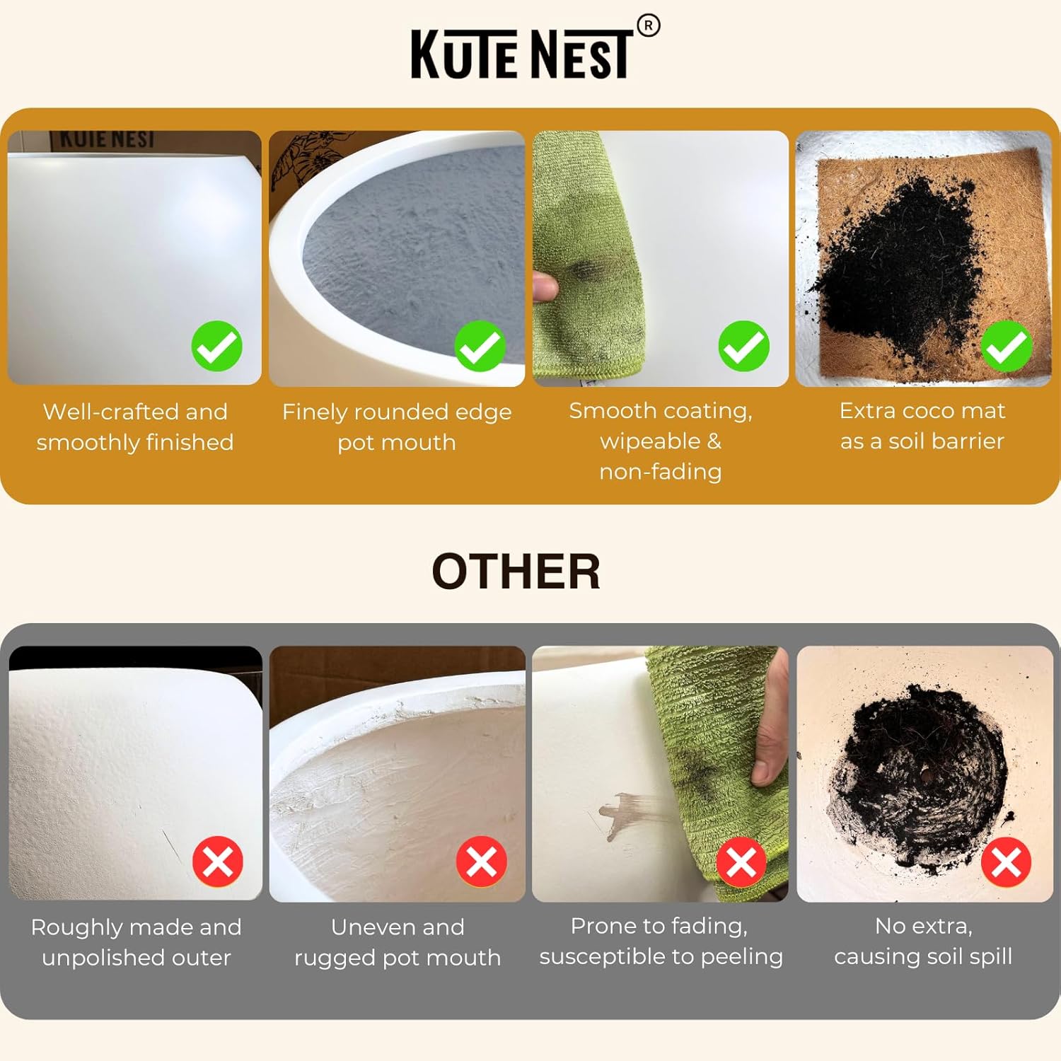 - ššššššš ššššššššš: With the unique feature of contract-grade fiberstone, KUTE NEST planters for indoor plants are weather-resistant, with rare issues like cracking or fading. Fiberstone planters are also easy to maintain, requiring minimal effort to keep your tall planters for indoor plants, round planters, or large pots pristine over time.