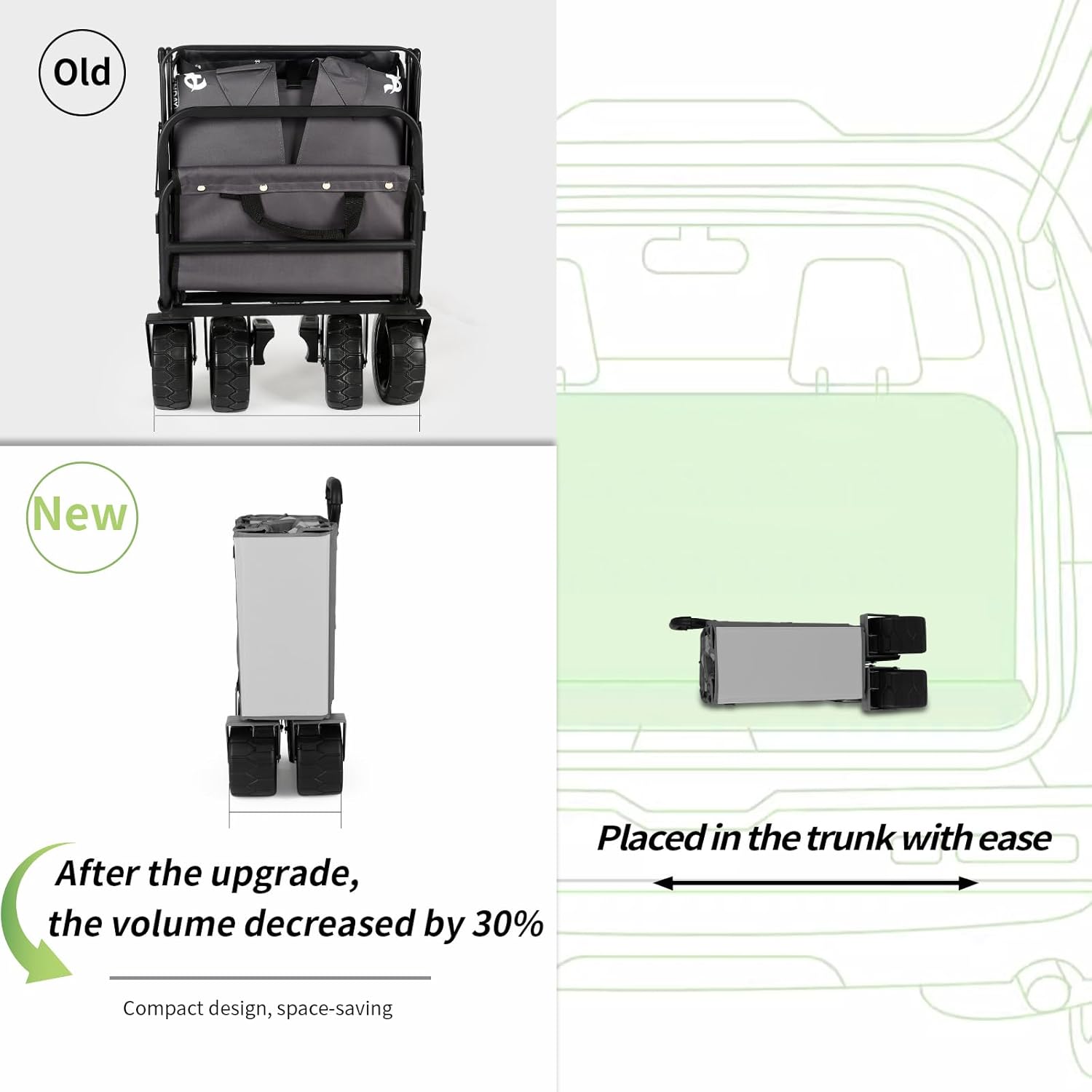 - 【Collapsible Folding Design】 No assembly required. With an internal pull rope design, the folding wagon cart can be folded effortlessly in one step, saving time and space. When unfolded, the wagon measures 38" x 21.6" x 27". When folded, it measures approximately 14" x 28" x 10" and weighs only 25 pounds, making it easy to carry.
