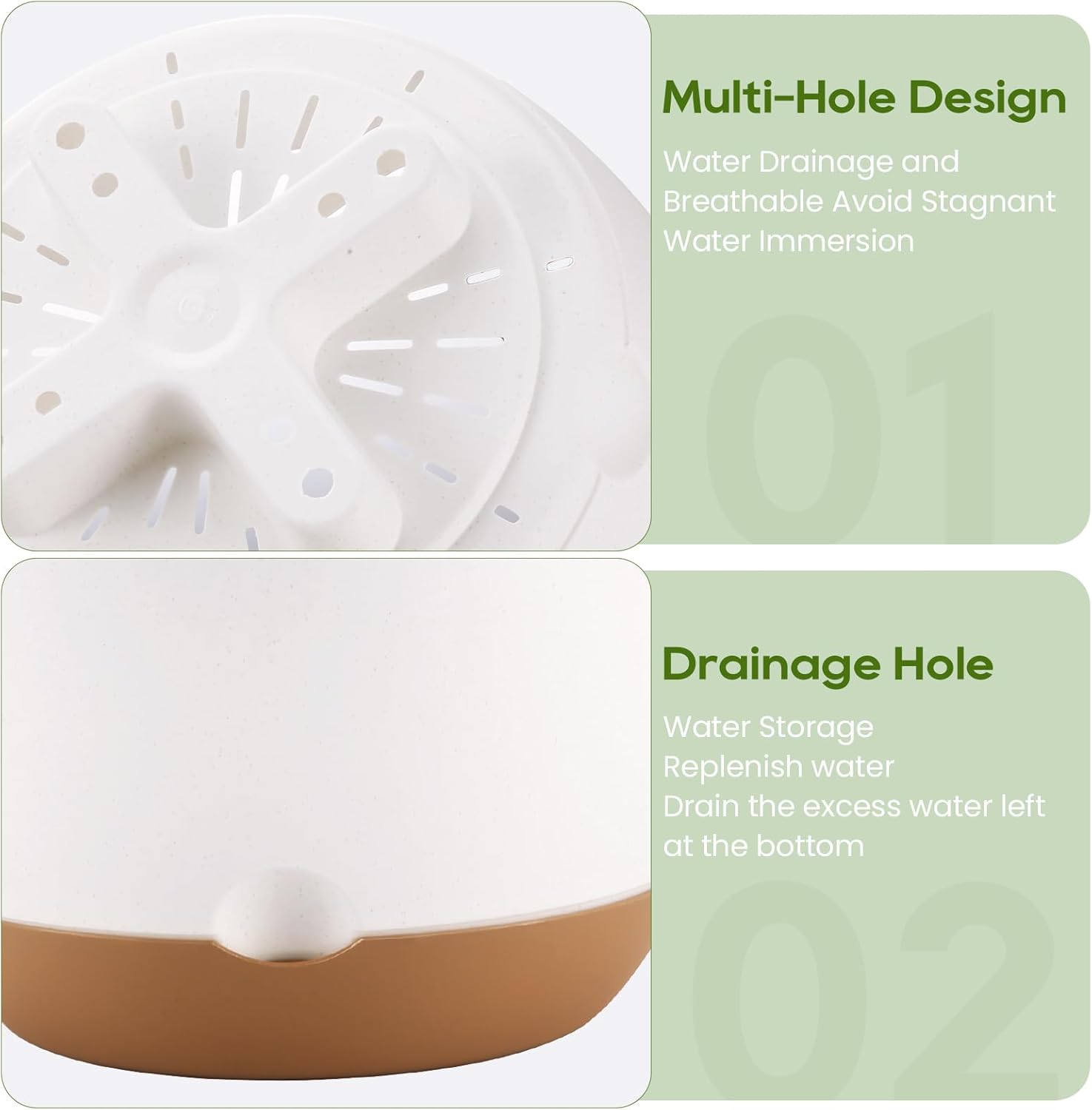 - Removable Trays - Tray and flowerpot can be easily separated, and the bottom of flowerpot is porous design, which is convenient for ventilation and drainage, So that there is enough air circulation in the soil to prevent root rot and keep the soil moist.