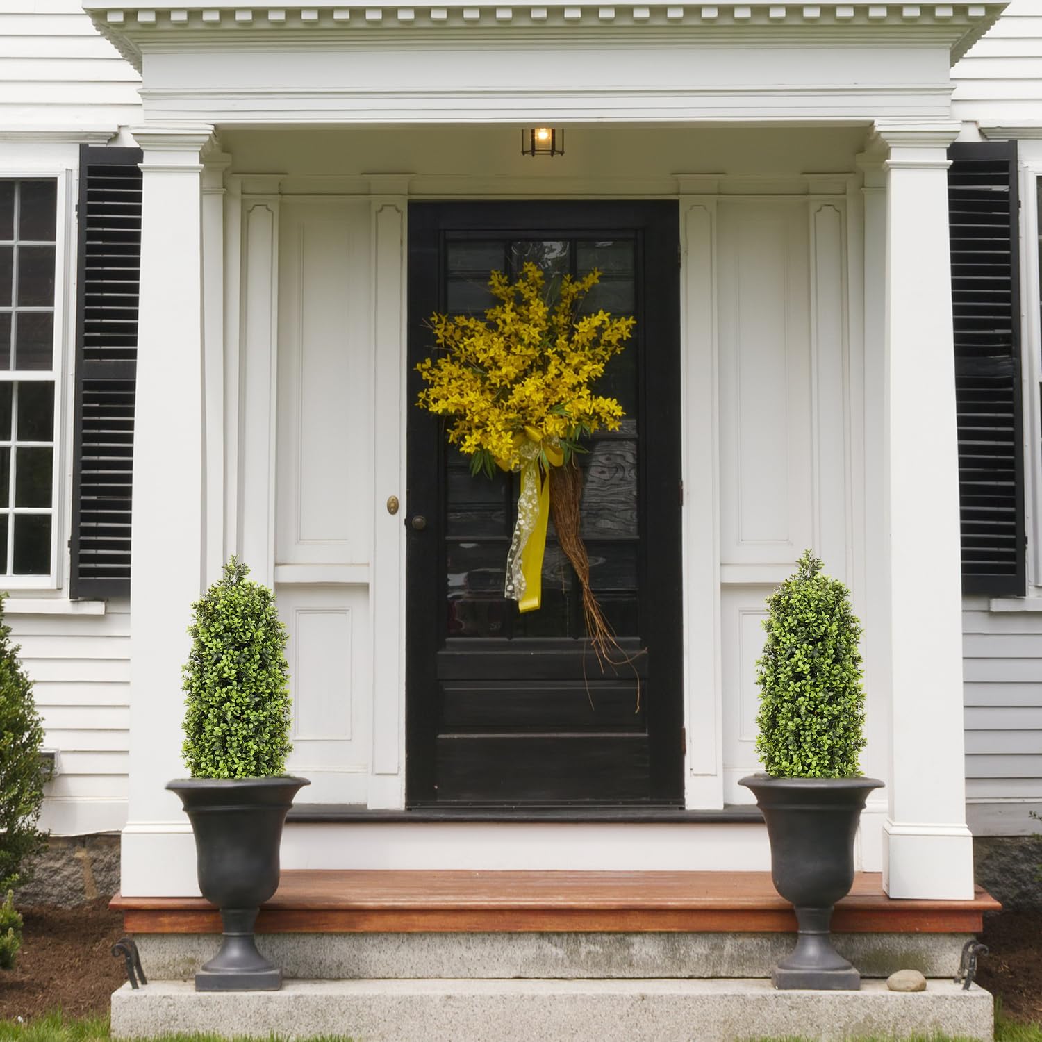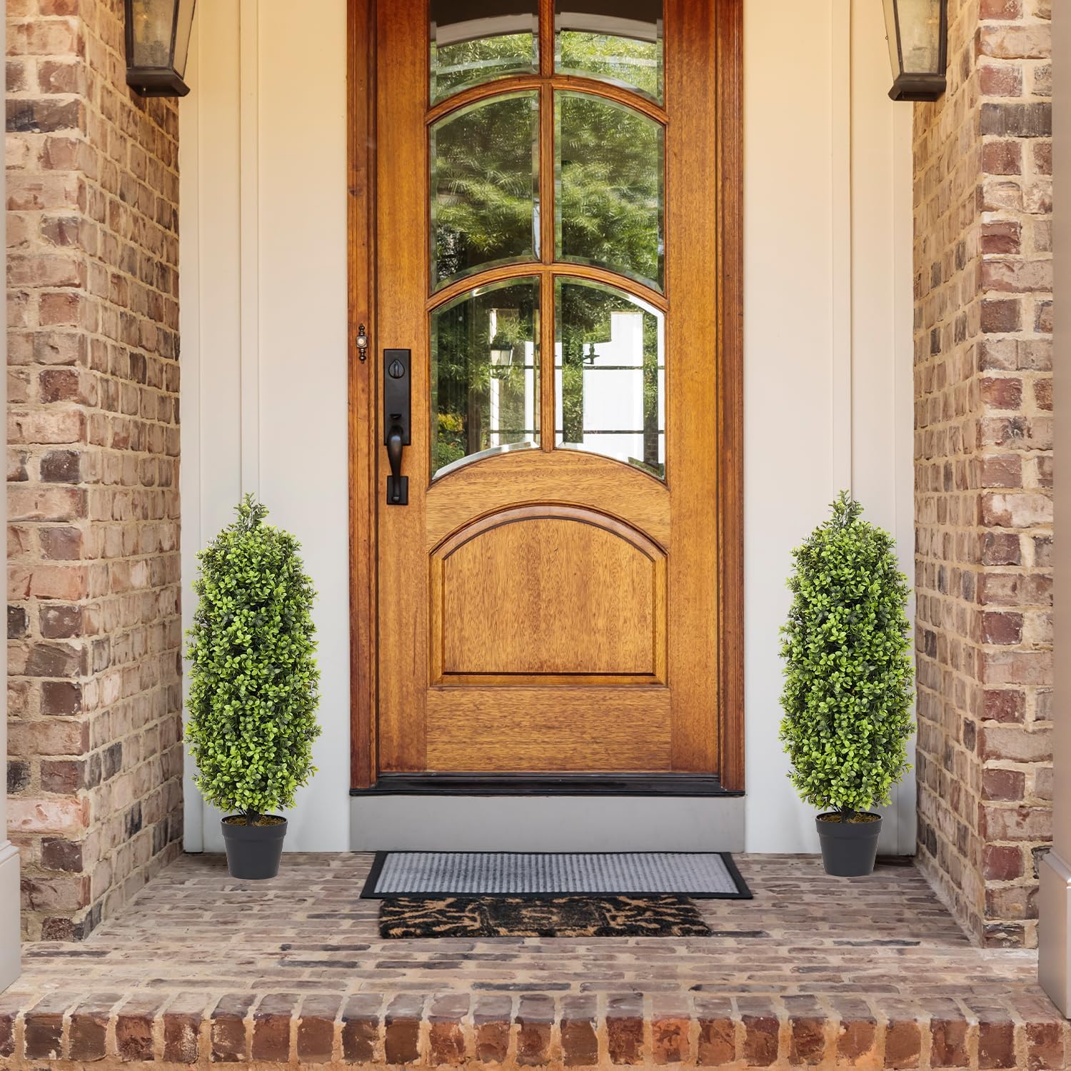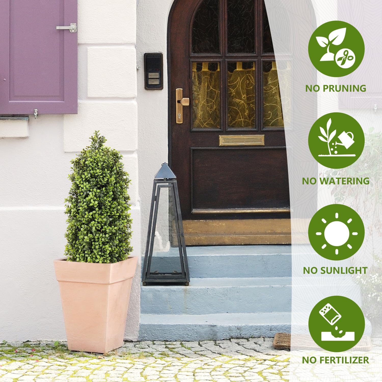 - UV-Resistant & Weatherproof: Designed as durable faux plants outdoor, these artificial topiary for outdoors withstand sunlight, rain, and wind, keeping their vibrant green color year-round