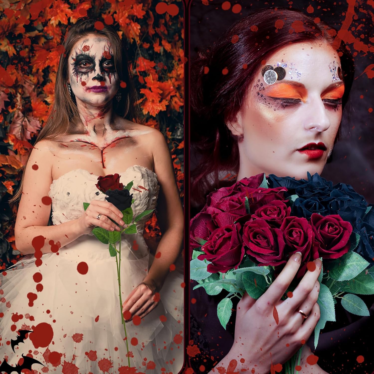 36 Pcs Silk Black Red Rose Bouquet Bridal Artificial Flowers,Fake Rose Long Stem Realistic Artificial Flowers Bulk for Wedding Bouquet Ball Arrangement Centerpiece Party Decor