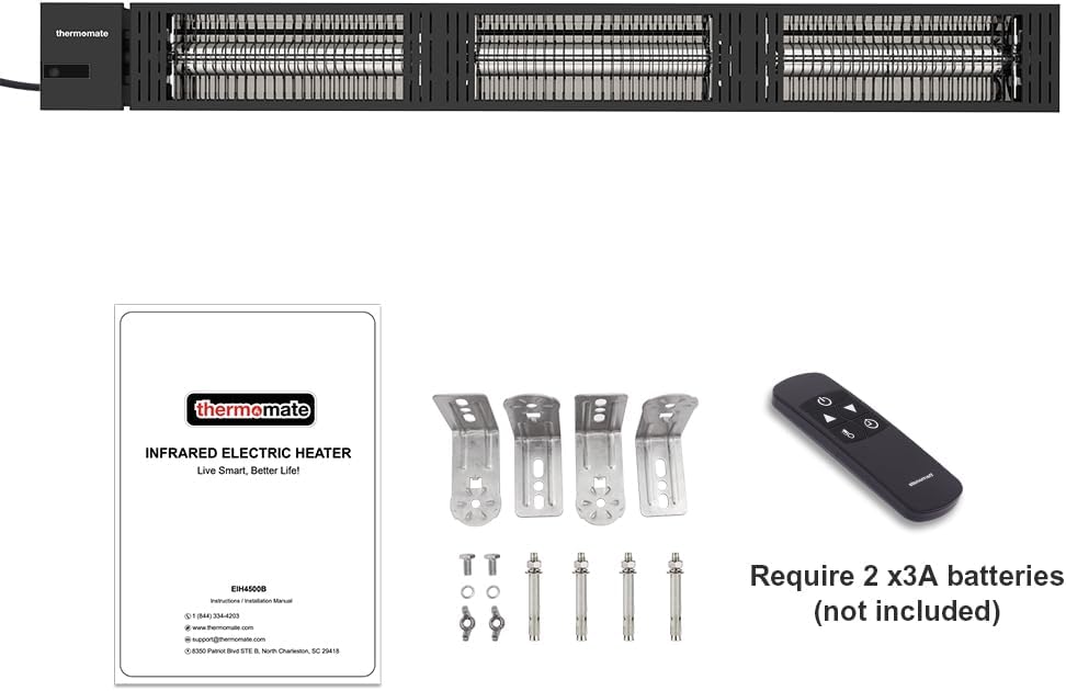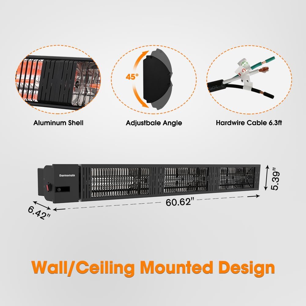 ThermoMate Infrared Outdoor Patio Heater, 4500W Carbon Fiber Heating for Porch, Deck, Garage with Remote 24 Hours Timer, Hard Wired 240V