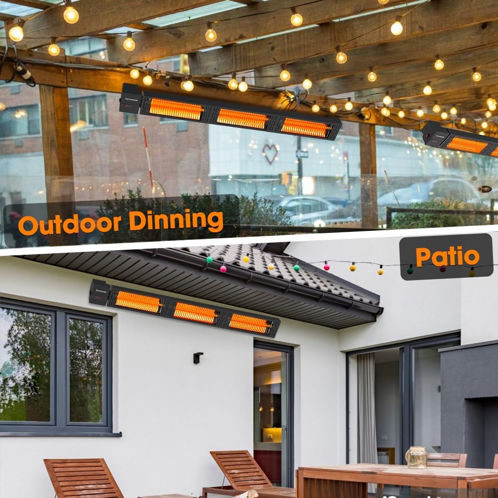 - 3 SECONDS INSTANT HEAT - This infrared patio heater with carbon fiber heating tube delivers instant powerful heat, only warming people and solid objects directly and unaffected by wind, providing you with maximum comfort for your winter activity outdoor, perfect addition to your patio, deck, garage or workspace