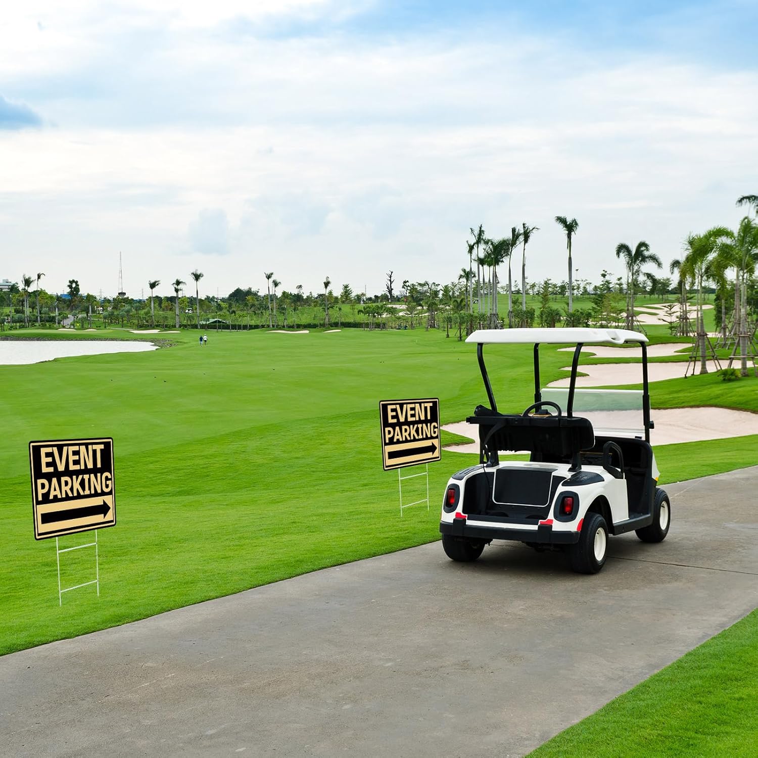 Juexica 9 Pieces 16 x 12 Inches Outdoor Event Parking Signs with Arrow Corrugated Plastic Yard Double Sided Event Signs Outdoor Directional Guest Parking(Black and Gold)