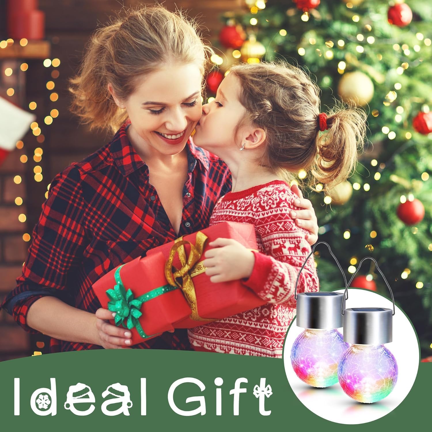 GIGALUMI 16 Pack Solar Hanging Lights for Christmas Decoration - Cracked Glass Solar Lights Outdoor Waterproof for Garden, Yard, Fence, Tree (Color Changing)