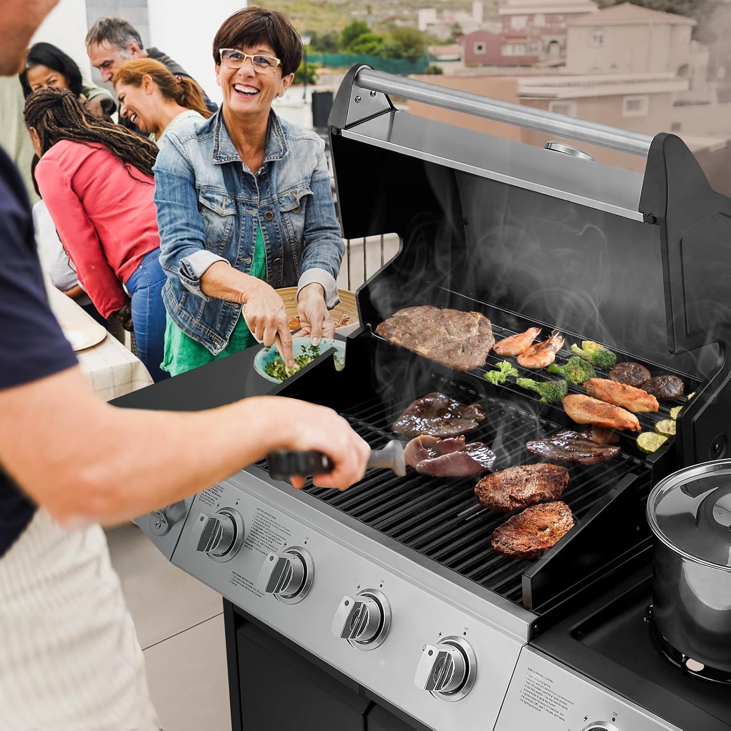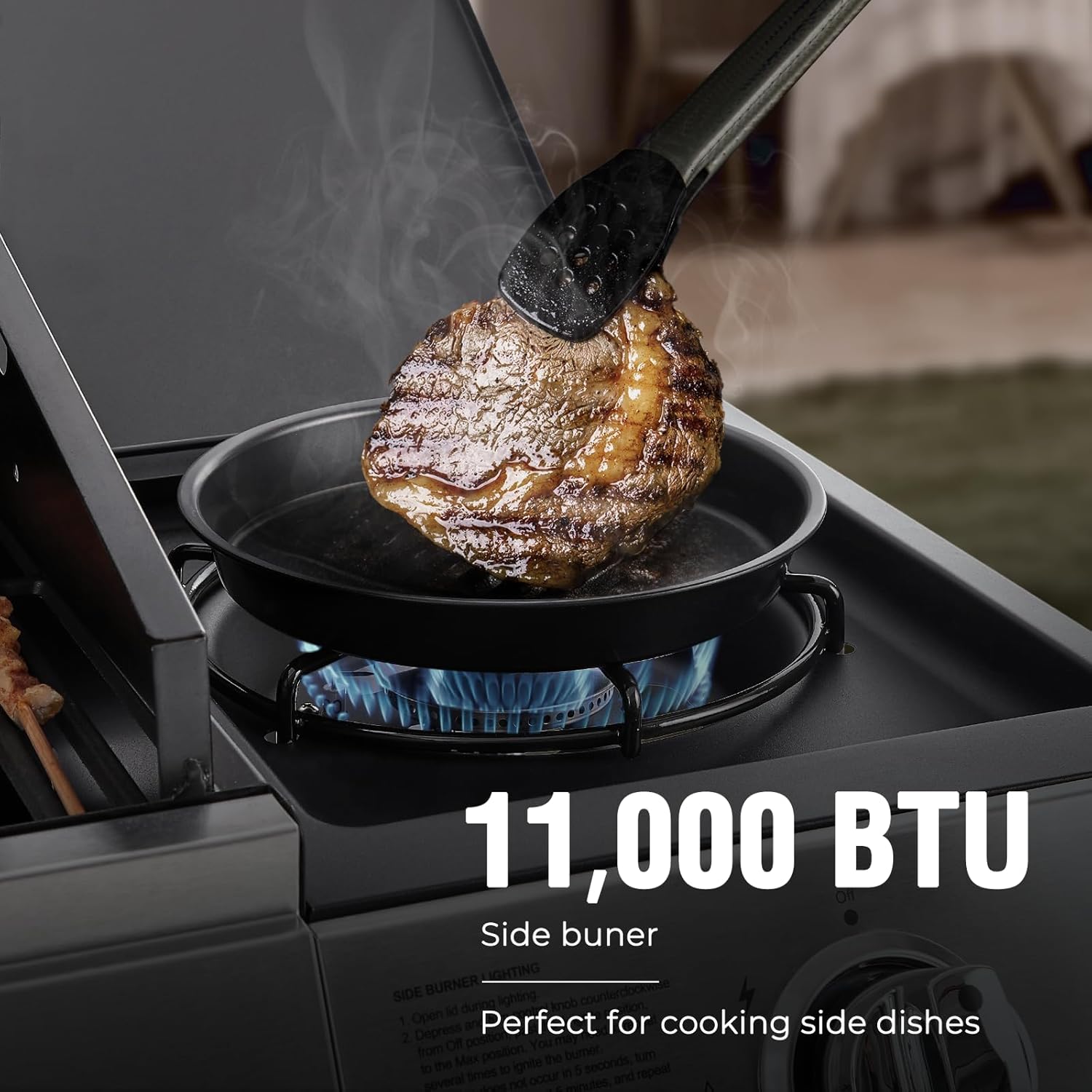 - 【Enhanced Heat Control with More Burners】This outdoor gas grill features 4 main burners and 1 side burner, delivering a total of 49,000 BTU; Perfect for searing steaks and cooking with pots and pans, it offers precise temperature management