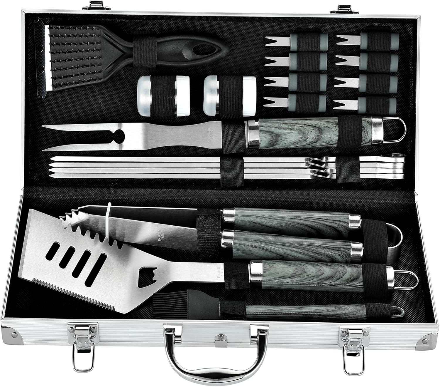 ROMANTICIST 20pcs Heavy Duty BBQ Grill Tool Set in Case - The Very Best Grill Gift for Father's Day and Christmas - Professional BBQ Accessories Set for Outdoor Cooking Camping Grilling Smoking, Grey