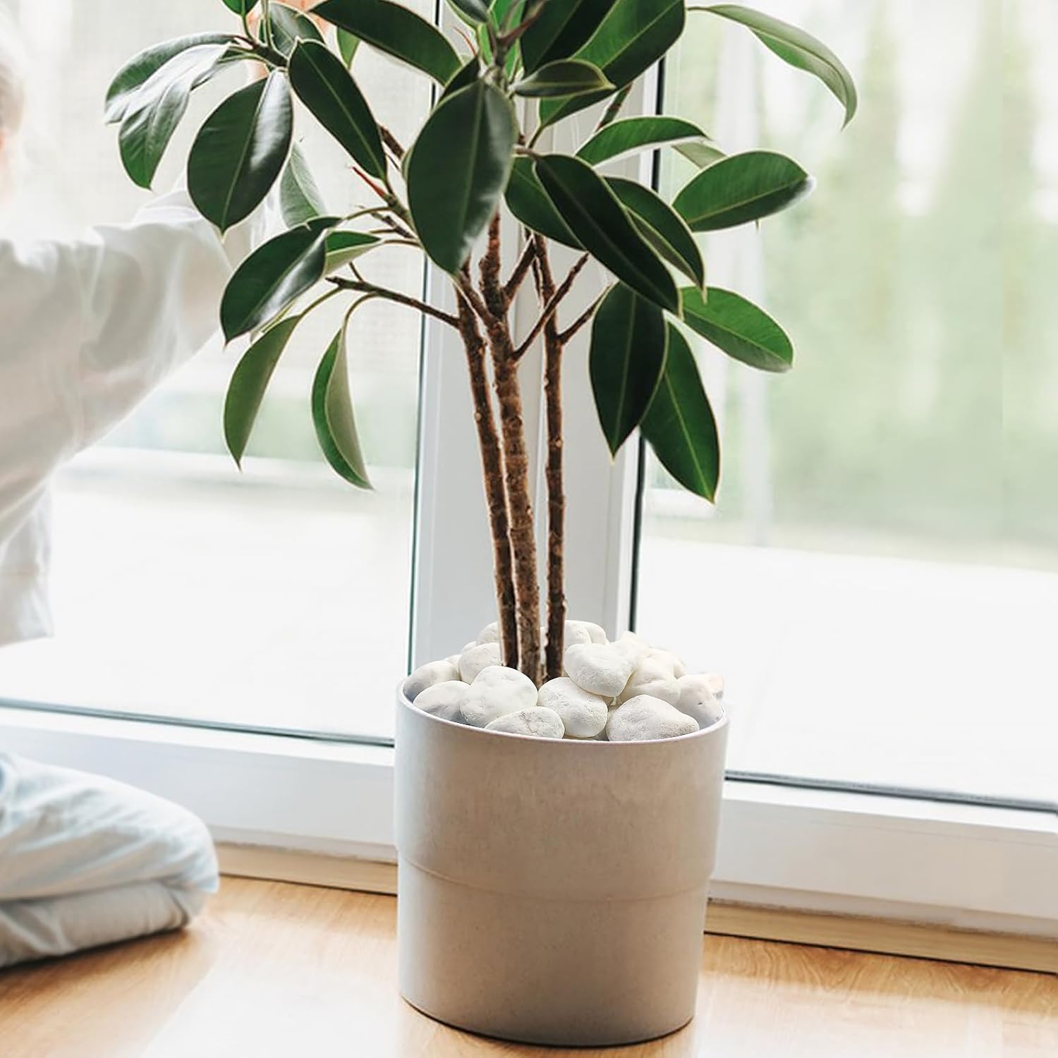 - 【White Pebbles for Plants】White pebbles are matte surface, natural colors, without sharp edges and corners, and will not hurt your succulents. They’re really bright, adding some white color to a plant terrarium. Ideal for cover the indoor potted plants, cactus, flower arrangements, vase fillers, water features and aquarium decorative